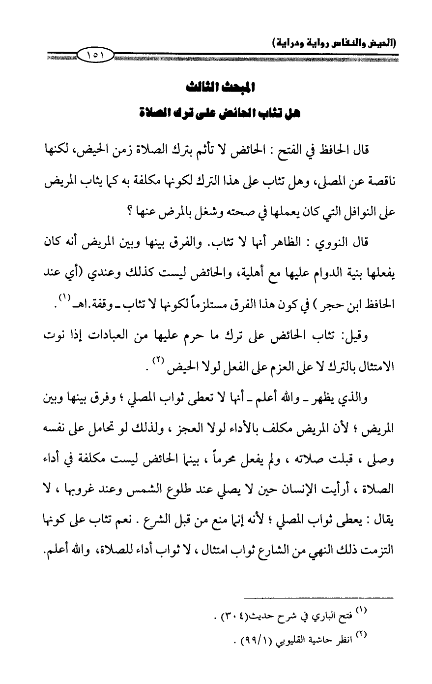 المبحث الثالث: هل تثاب الحائض على ترك الصلاة