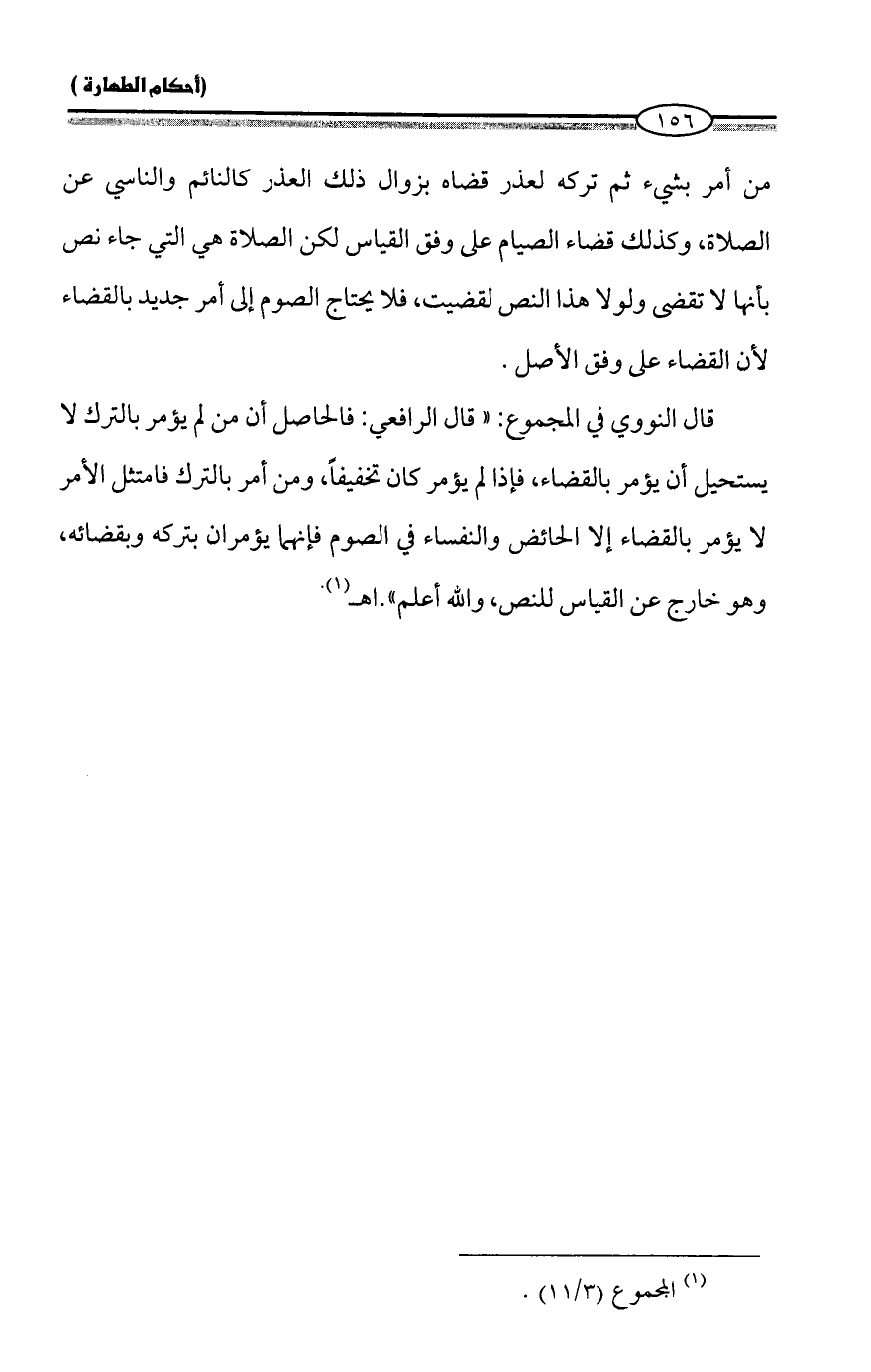 قال النووي في المجموع: "قال الرافعي: فالحاصل أن من لم يؤمر بالترك لا يستحيل أن يؤمر بالقضاء، فإذا لم يؤمر كان تخفيفاً، ومن أمر بالترك فامتثل الأمر لا يؤمر بالقضاء إلا الحائض والنفساء في الصوم فإنهما يؤمران بتركه وبقضائه، وهو خارج عن القضاء للنص، والله أعلم". اهـ (¬١).