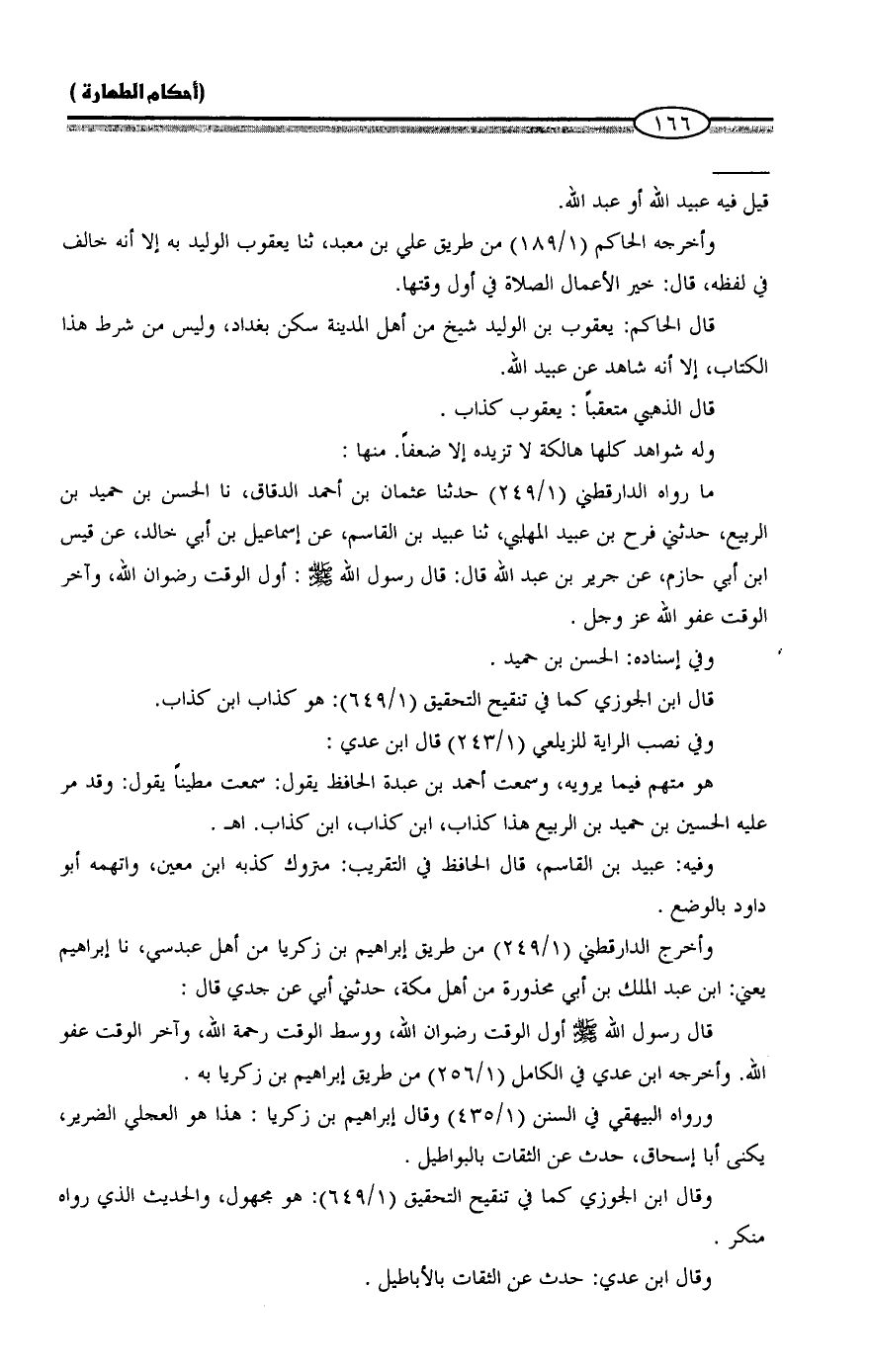 وفي نصب الراية للزيلعي (١/ ٢٤٣) قال ابن عدي: