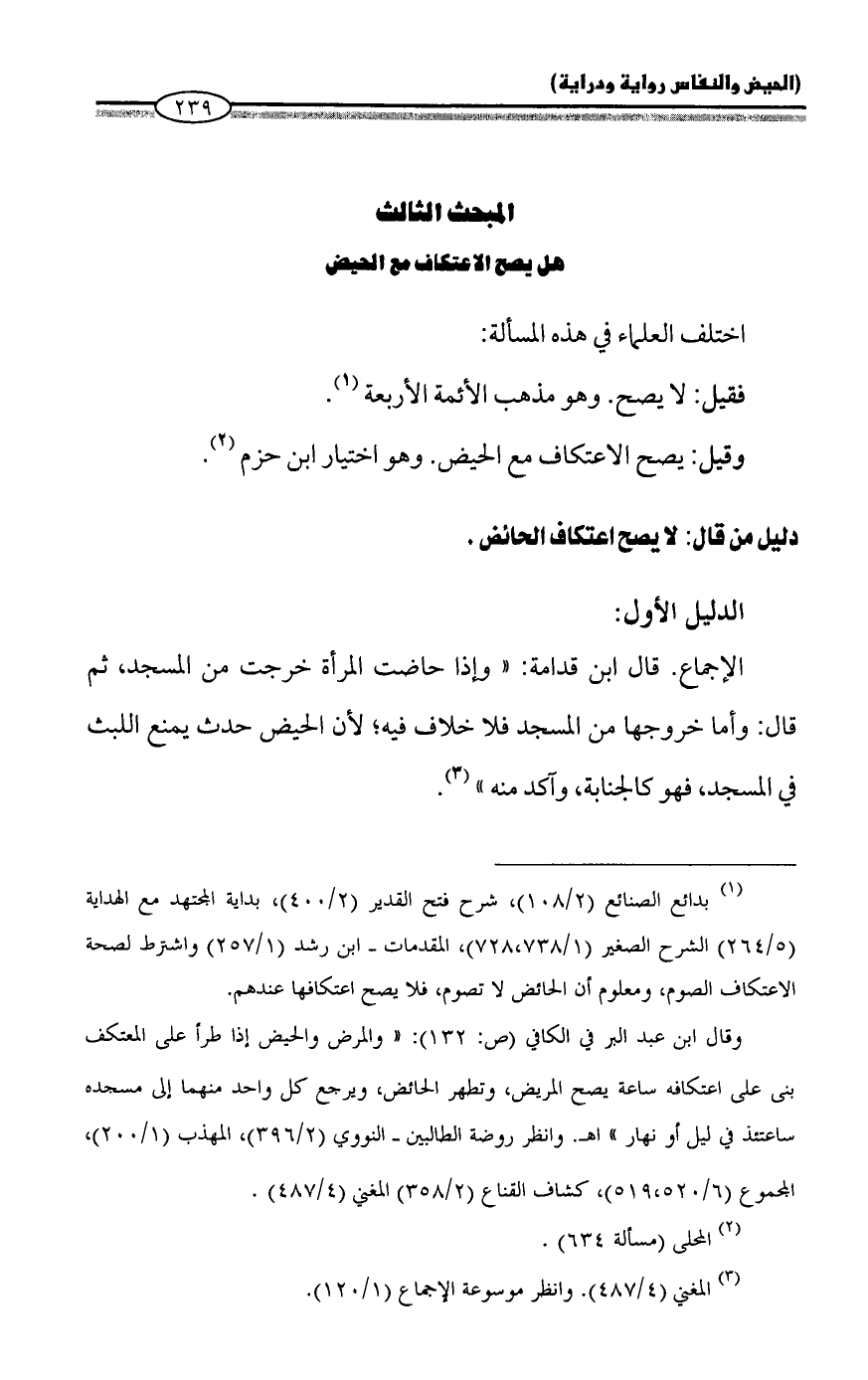 المبحث الثالث: هل يصح الاعتكاف مع الحيض