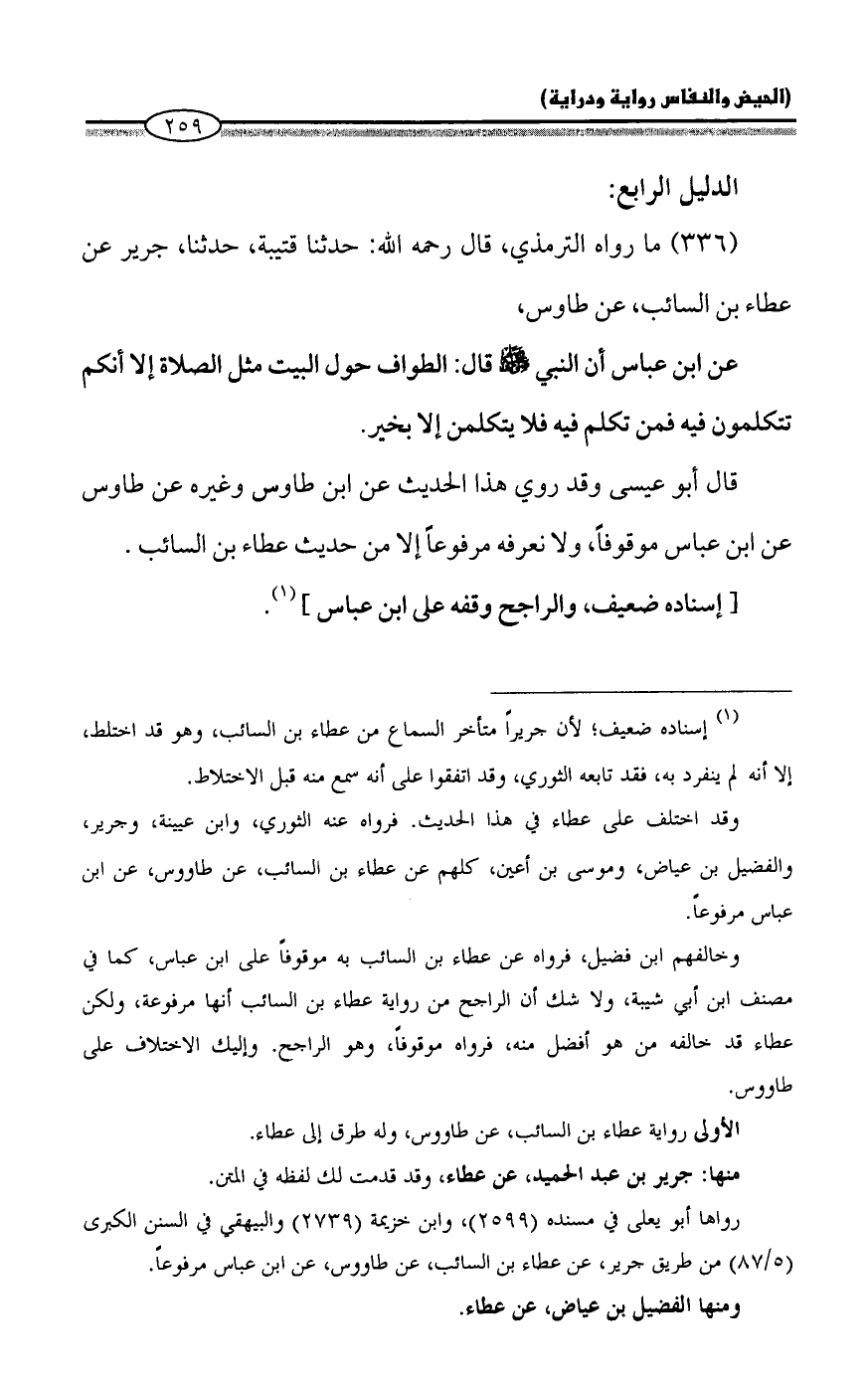 (٣٣٦) ما رواه الترمذي، قال رحمه الله: حدثنا قتيبة، حدثنا، جرير عن عطاء بن السائب، عن طاوس،