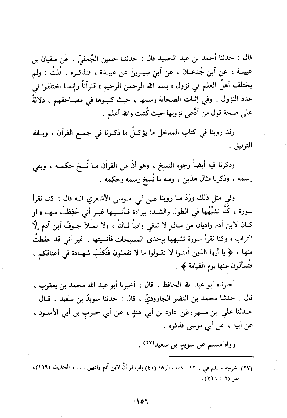 [ (27) ] أخرجه مسلم في: 12- كتاب الزكاة (40) باب لو أنّ لابن آدم واديين ... ، الحديث (119) ، ص (2: 726) .