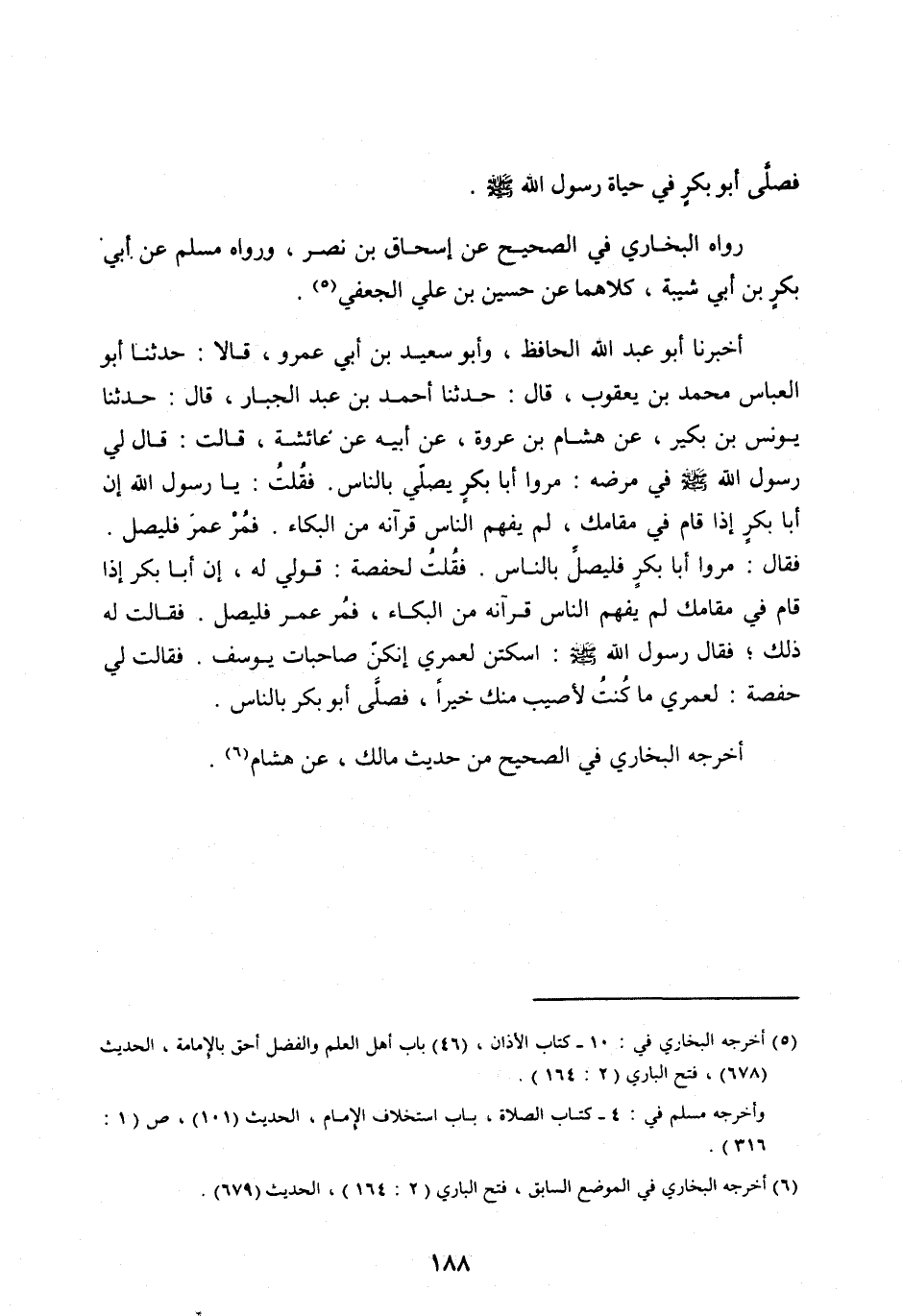 [ (5) ] أخرجه البخاري في: 10- كتاب الأذان، (46) باب أهل العلم والفضل أحق بالإمامة، الحديث (678) ، فتح الباري (2: 164) .
