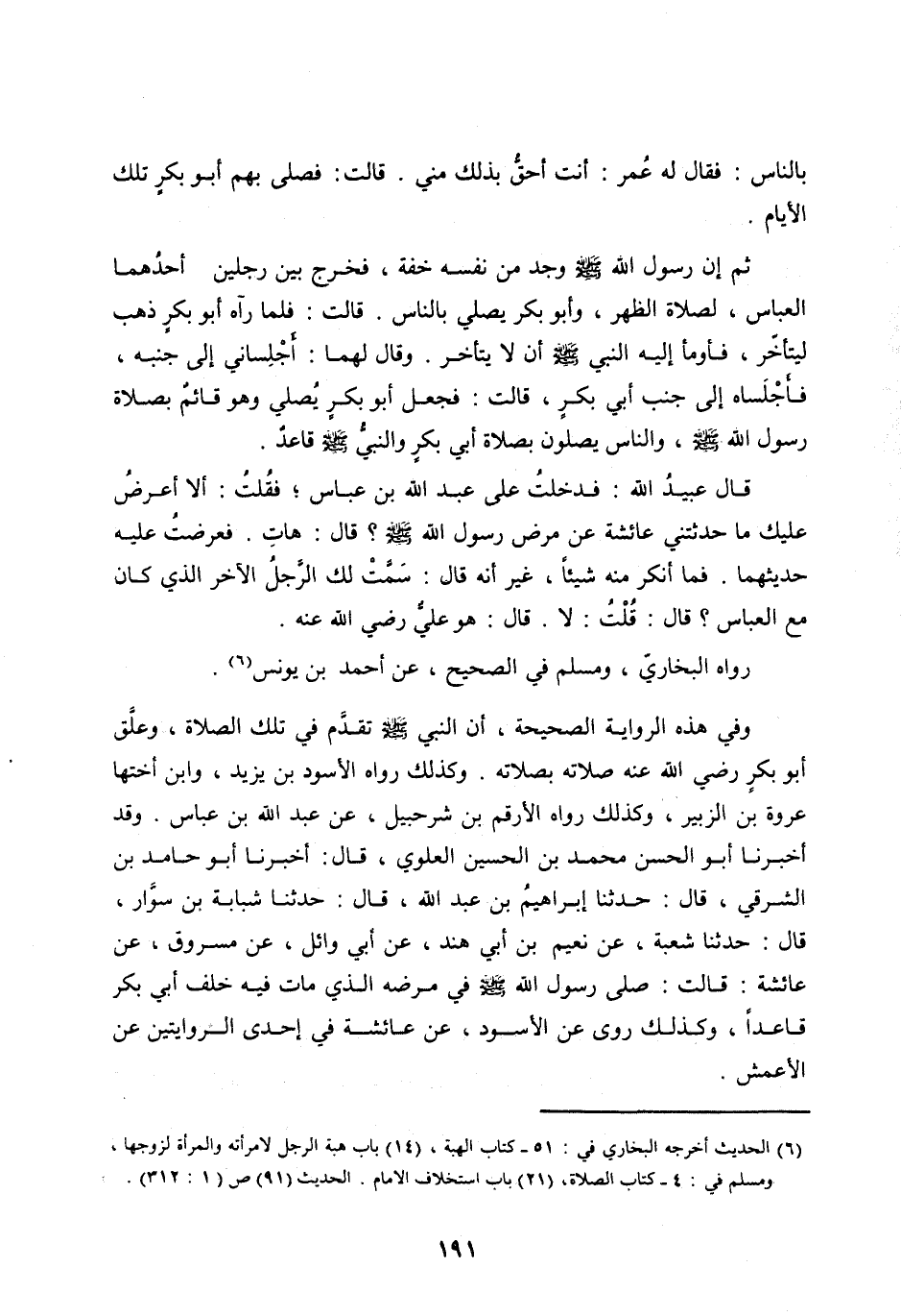 [ (6) ] الحديث أخرجه البخاري في: 51- كتاب الهبة، (14) باب هبة الرجل لامرأته والمرأة لزوجها، ومسلم في: 4- كتاب الصلاة، (21) باب استخلاف الامام. الحديث (91) ص (1: 312) .