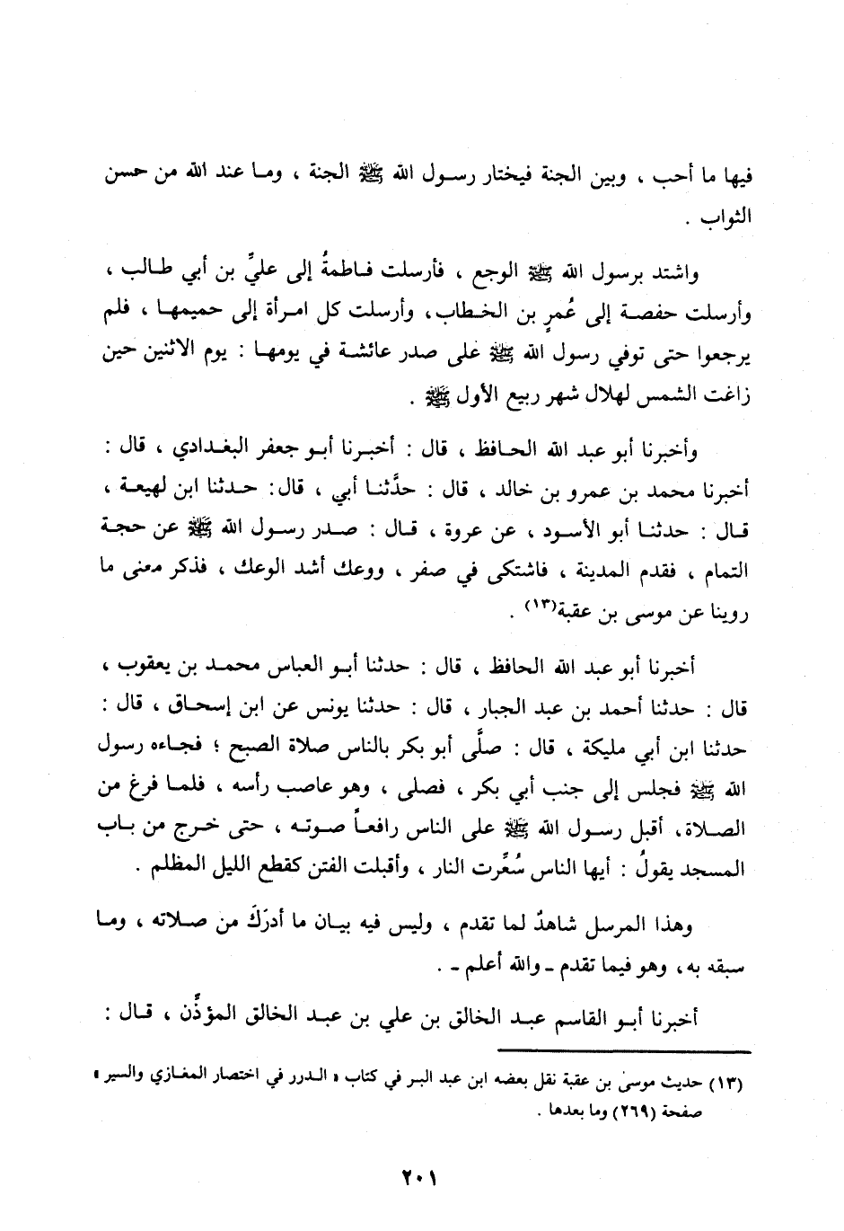 [ (13) ] حَدِيثِ مُوسَى بْنِ عُقْبَةَ نقل بعضه ابن عبد البر في كتاب «الدرر في اختصار المغازي والسير» صفحة (269) وما بعدها.
