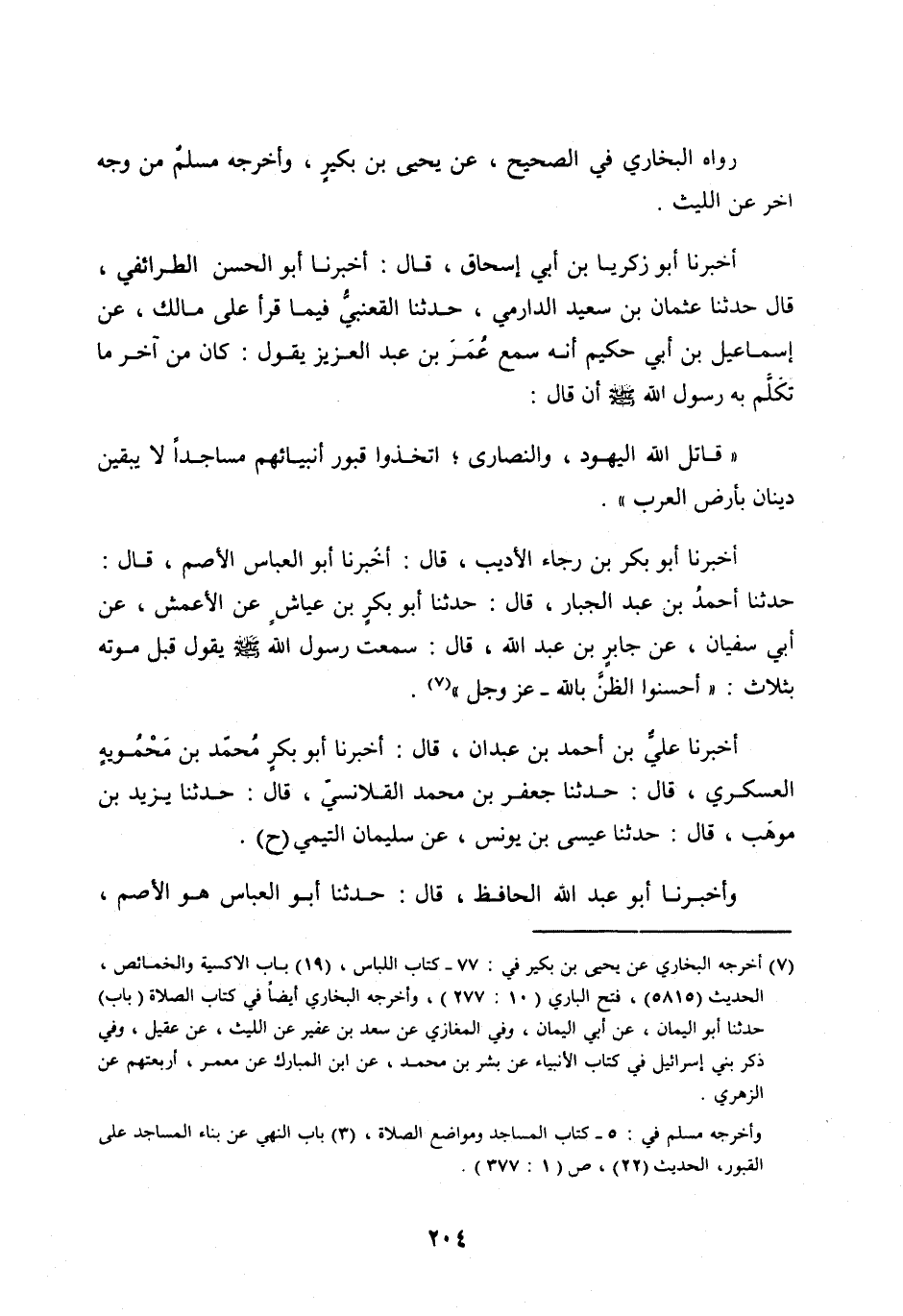 [ (7) ] أخرجه البخاري عَنْ يَحْيَى بْنِ بُكَيْرٍ في: 77- كتاب اللباس، (19) باب الاكسية والخمائص، الحديث (5815) ، فتح الباري (10: 277) ، وأخرجه البخاري أيضا في كتاب الصلاة (باب) حدثنا أبو اليمان، عَنْ أَبِي الْيَمَانِ، وَفِي المغازي عن سعد بْنِ عُفَيْرٍ عَنِ اللَّيْثِ، عن عقيل، وفي ذكر بني إسرائيل في كتاب الأنبياء عَنْ بِشْرِ بْنِ مُحَمَّدِ، عن ابْنُ الْمُبَارَكِ عَنْ مَعْمَرٍ، أربعتهم عن الزهري.