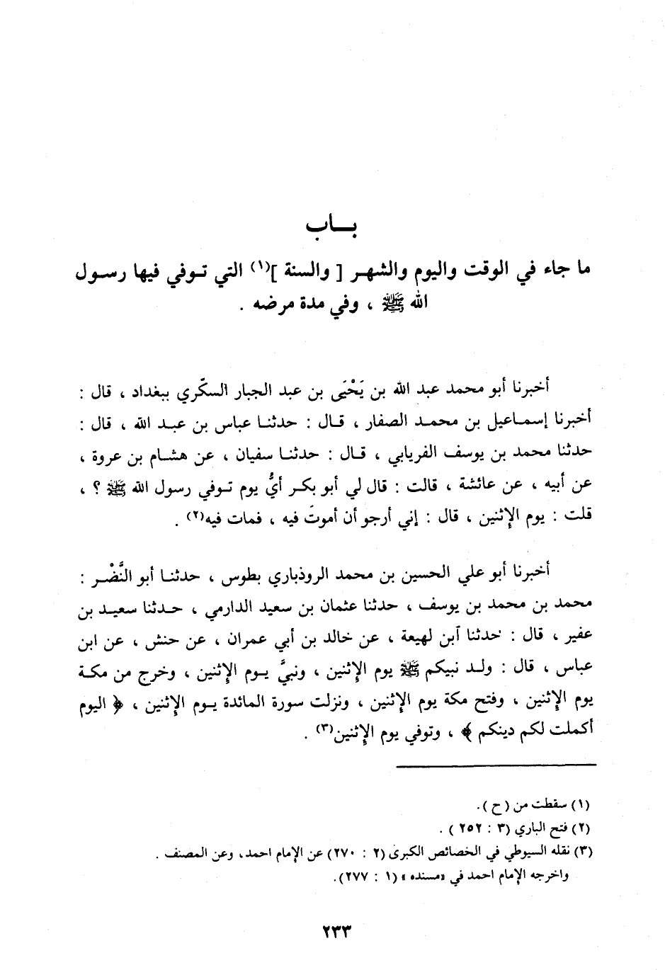[ (3) ] نقله السيوطي في الخصائص الكبرى (2: 270) عن الإمام أحمد، وعن المصنف.