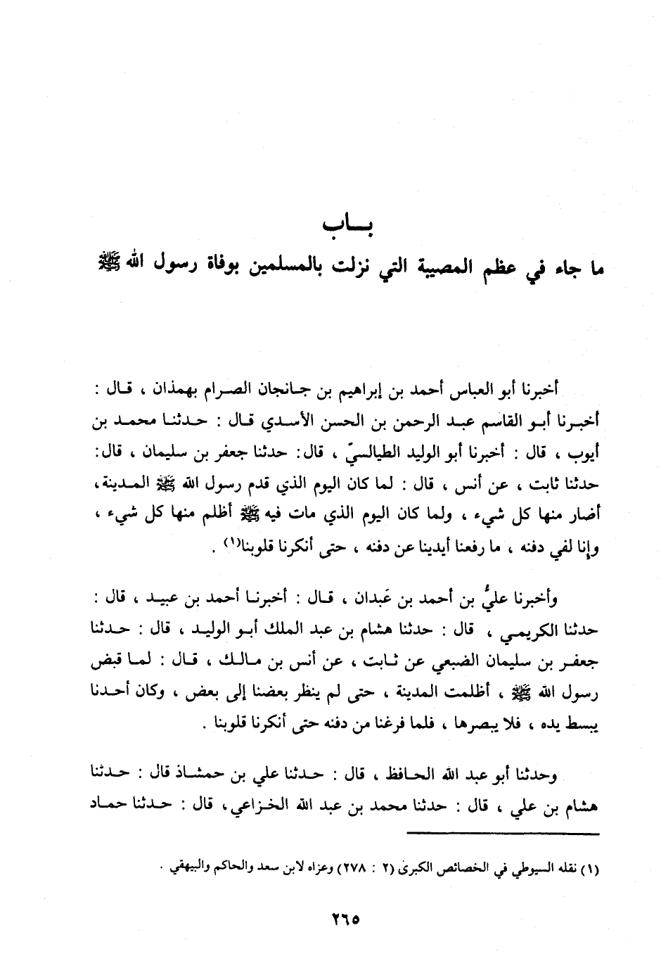 [ (1) ] نقله السيوطي في الخصائص الكبرى (2: 278) وعزاه لابن سعد والحاكم والبيهقي.