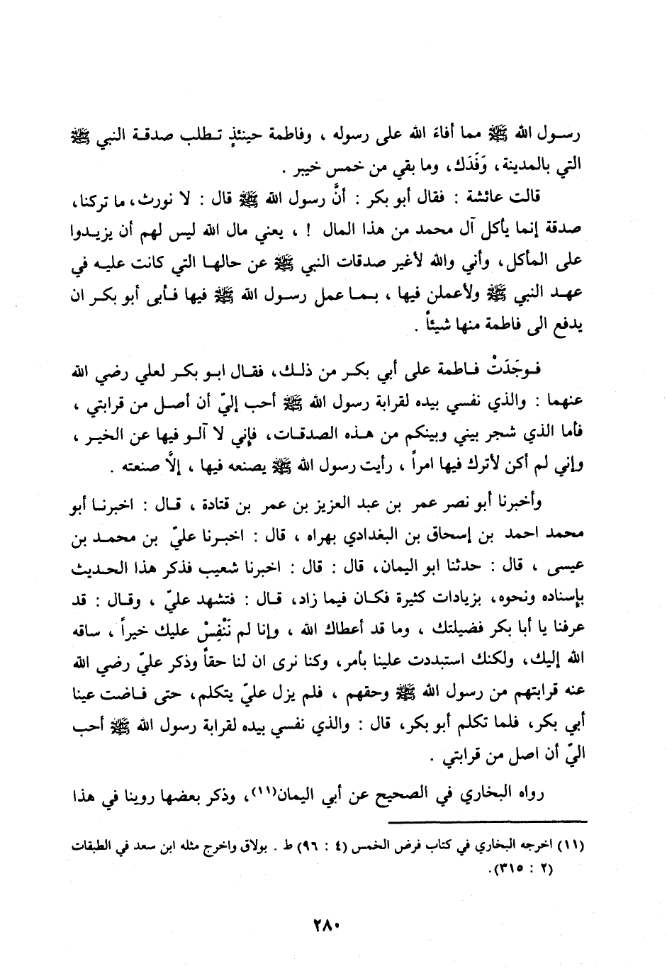 [ (11) ] أخرجه البخاري في كتاب فرض الخمس (4: 96) ط. بولاق واخرج مثله ابن سعد في الطبقات (2: 315) .