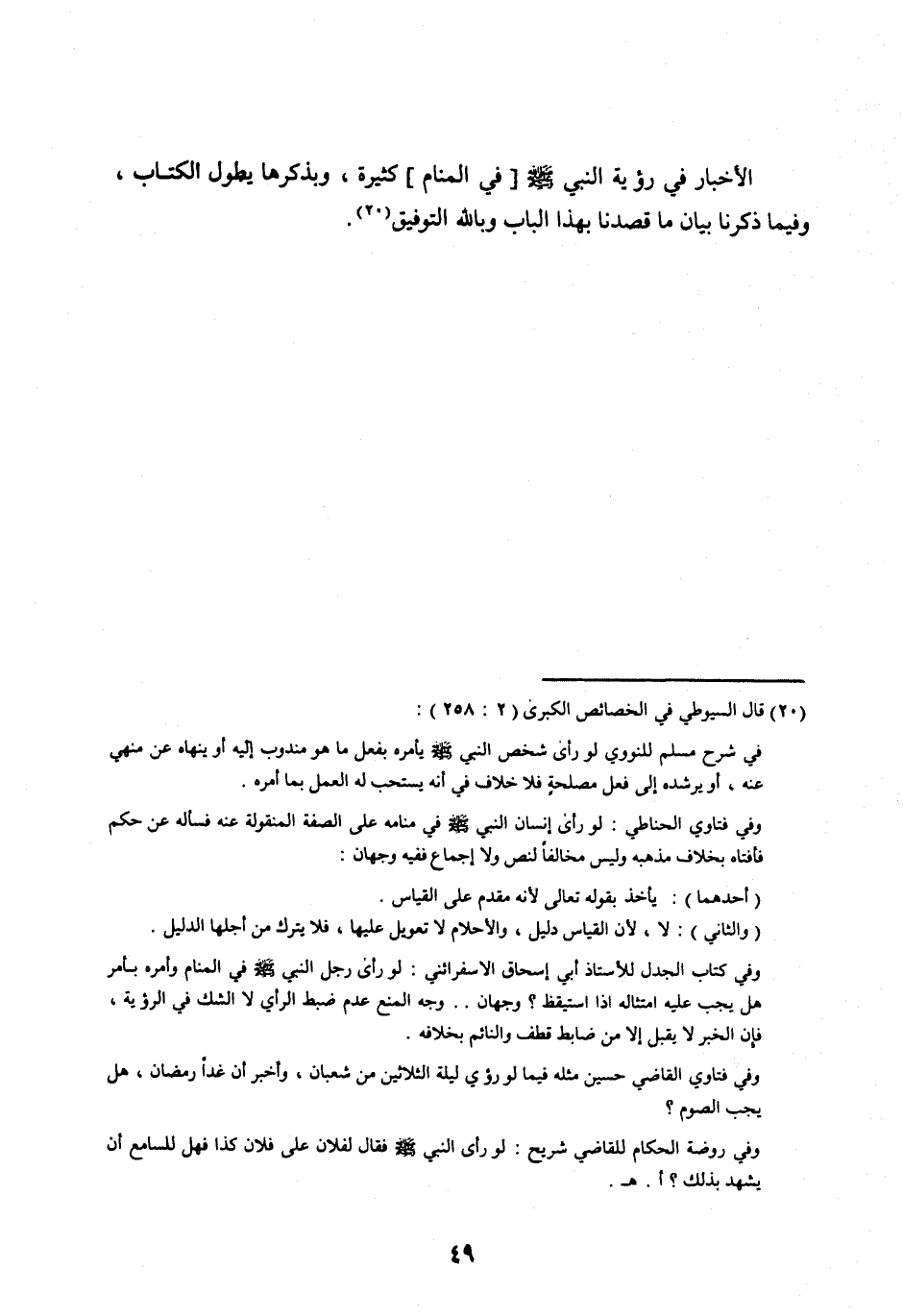 الْأَخْبَارُ فِي رُؤْيَةِ النَّبِيِّ صَلَّى اللهُ عَلَيْهِ وسلم [فِي الْمَنَامِ] كَثِيرَةٌ، وَبِذِكْرِهَا يَطُولُ الْكِتَابُ، وَفِيمَا ذَكَرْنَا بَيَانُ مَا قَصَدْنَا بِهَذَا الباب وبالله التوفيق [ (20) ] .