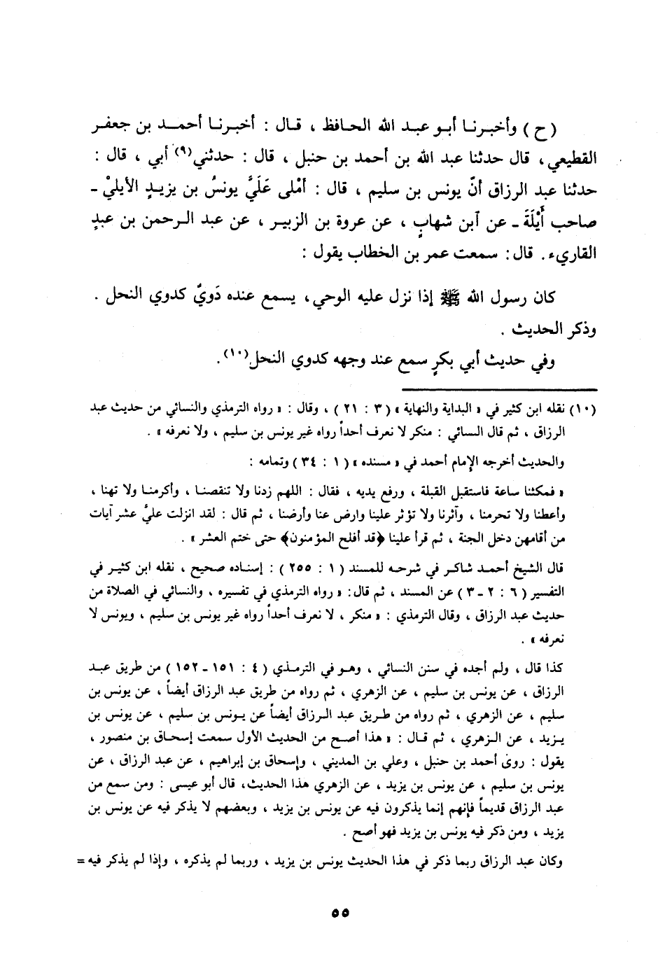 [ (10) ] نقله ابن كثير في «البداية والنهاية» (3: 21) ، وقال: «رواه الترمذي والنسائي من حديث عبد الرزاق، ثم قال السائي: منكر لا نعرف أحدا رواه غير يونس بن سليم، ولا نعرفه» .