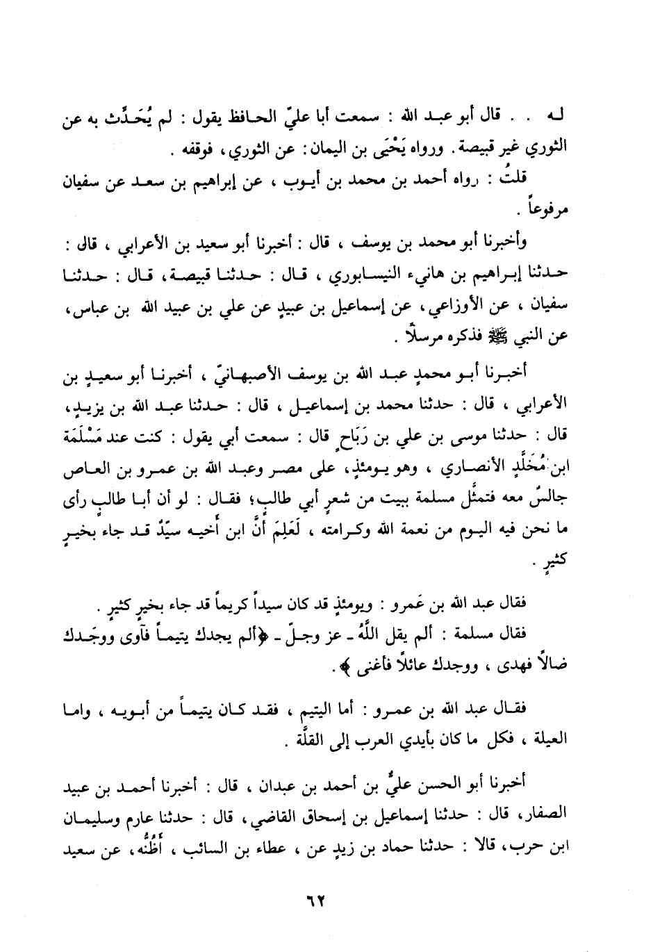 لَهُ.. قَالَ أَبُو عَبْدِ اللهِ: سَمِعْتُ أَبَا عَلِيٍّ الْحَافِظَ يَقُولُ: لَمْ يُحَدِّثْ بِهِ عَنِ الثَّوْرِيِّ غَيْرُ قَبِيصَةَ. وَرَوَاهُ يَحْيَى بْنُ الْيَمَانِ: عَنِ الثَّوْرِيِّ، فَوَقَفَهُ.