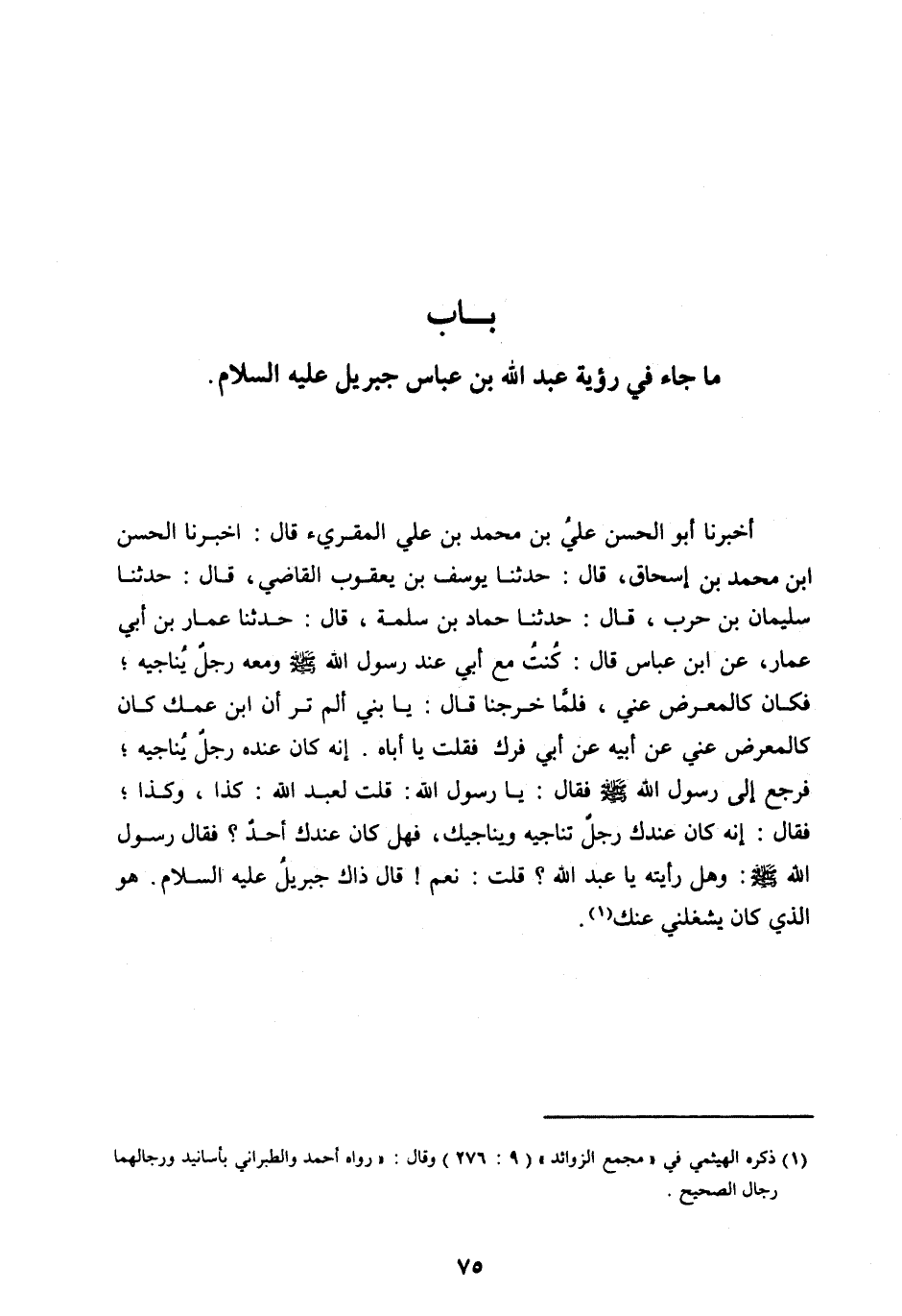 بَابُ مَا جَاءَ فِي رُؤْيَةِ عَبْدِ اللهِ بْنِ عَبَّاسٍ جِبْرِيلَ عَلَيْهِ السَّلَامُ.