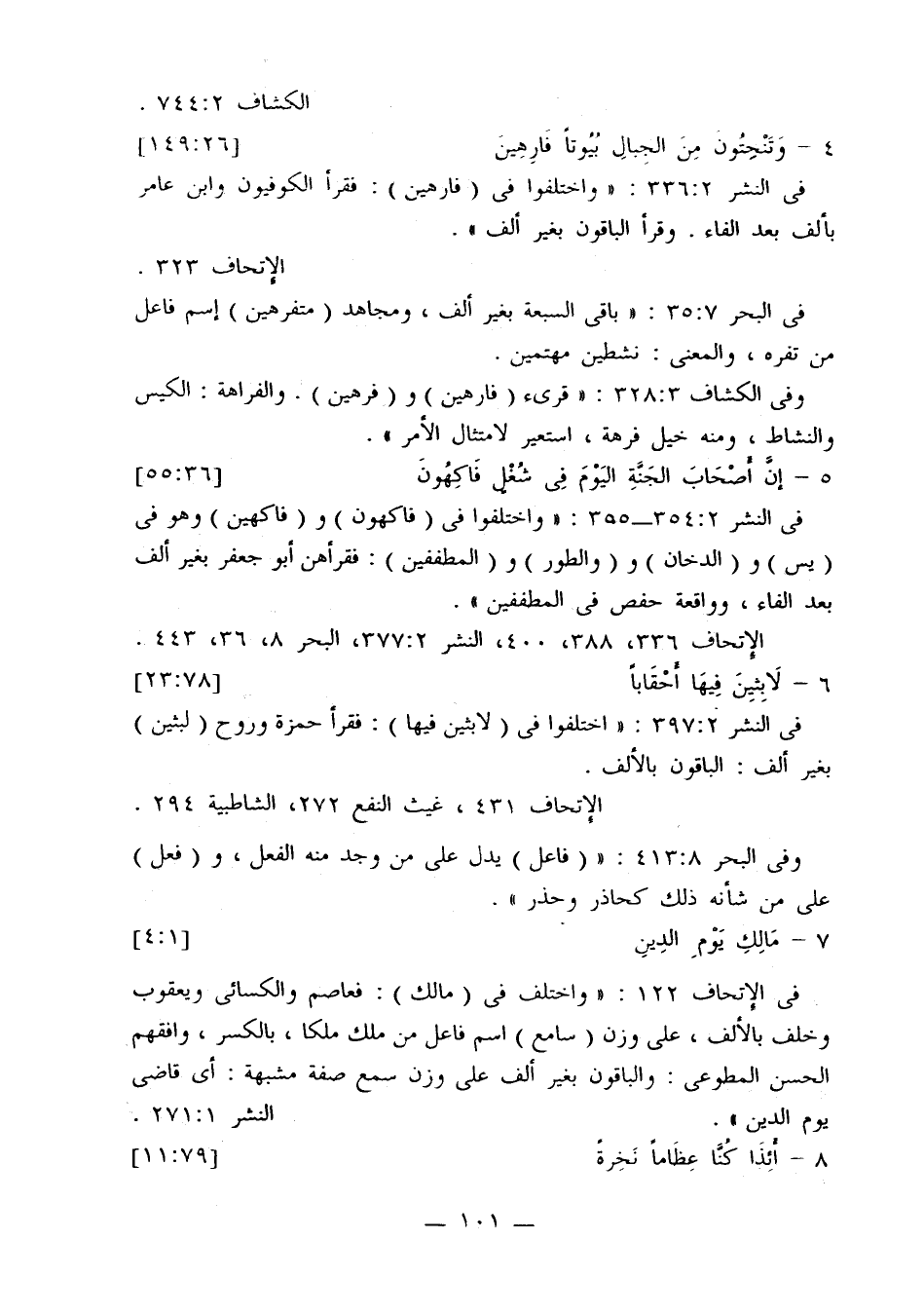 في النشر 336:2: «واختلفوا في (فارهين): فقرأ الكوفيون وابن عامر بألف بعد الفاء. وقرأ الباقون بغير ألف».