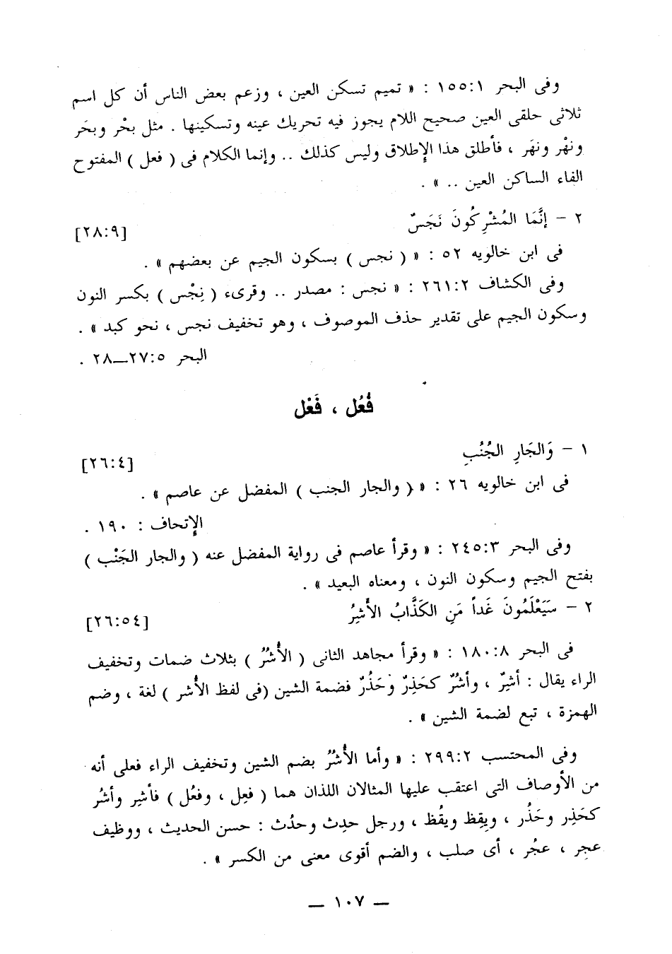 وفي البحر 155:1: «تميم تسكن العين، وزعم بعض الناس أن كل اسم ثلاثي حلقي العين صحيح اللام يجوز فيه تحريك عينه وتسكينها. مثل بحْر وبحَر ونْهر ونهَر، فأطلق هذا الإطلاق وليس كذلك .. وإنما الكلام في (فعل) المفتوح الفاء الساكن العين ..».