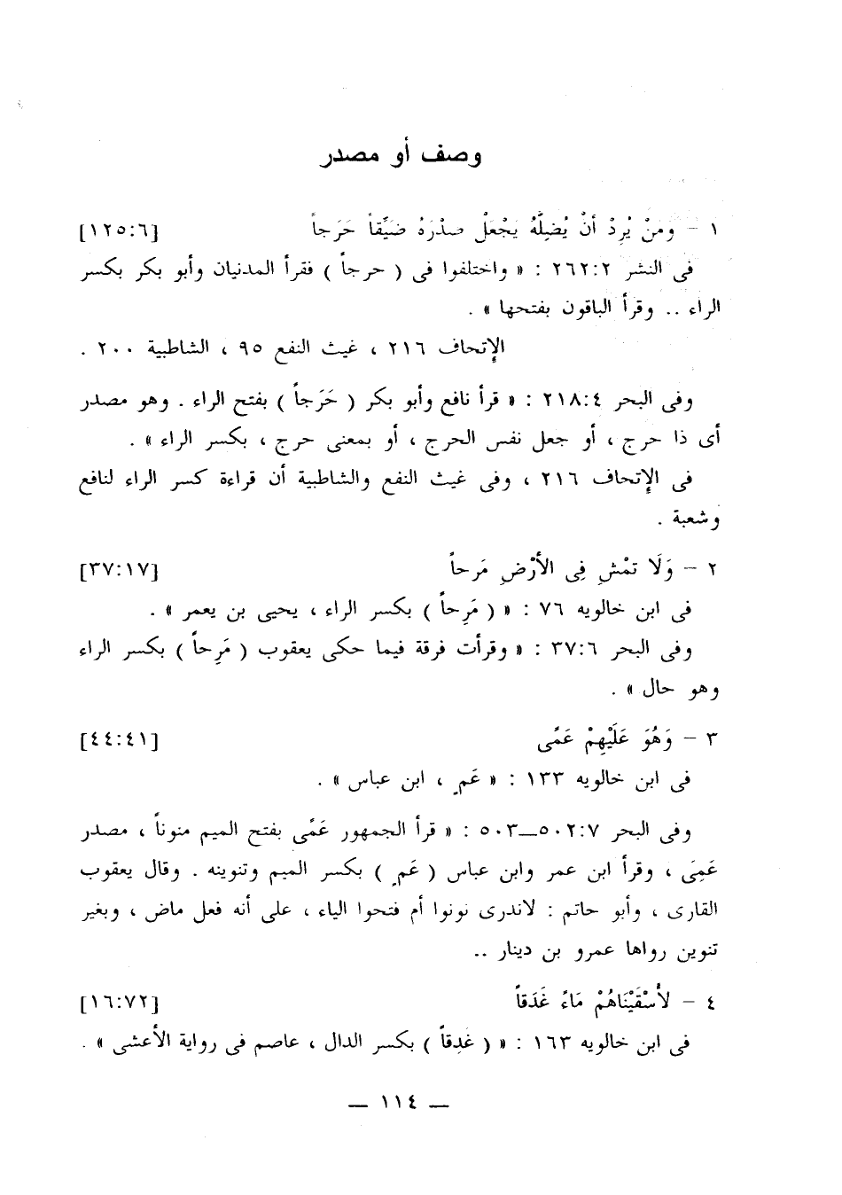 وفي البحر 218:4: «قرأ نافع وأبو بكر (حرجًا) بفتح الراء. وهو مصدر أي ذا حرج، أو جعل نفس الحرج، أو بمعنى حرج، بكسر الراء».