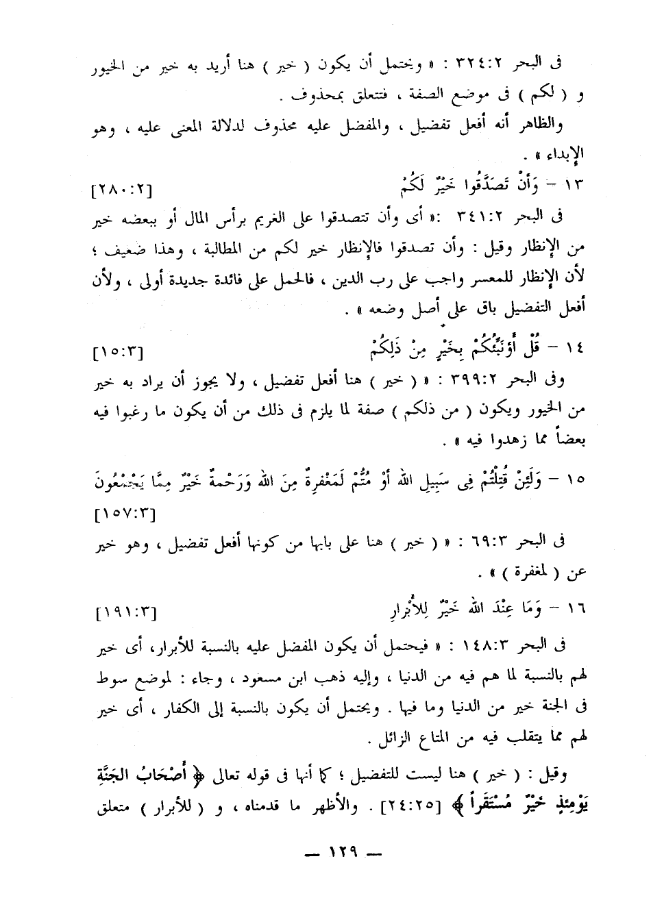وفي البحر 399:2: «(خير) هنا أفعل تفضيل، ولا يجوز أن يراد به خير من الخيور ويكون (من ذلكم) صفة لما يلزم في ذلك من أن يكون ما رغبوا فيه بعضًا مما زهدوا فيه».