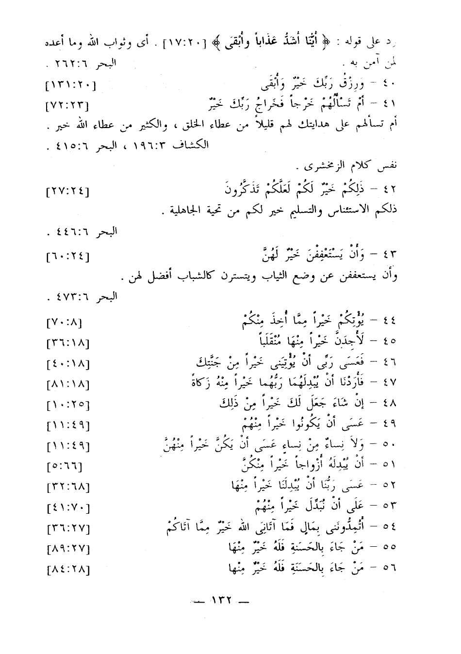 رد على قوله: {أَيُّنَا أَشَدُّ عَذَابًا وَأَبْقَى} [17:20]. أي وثواب الله وما أعده لمن آمن به. البحر 262:6.