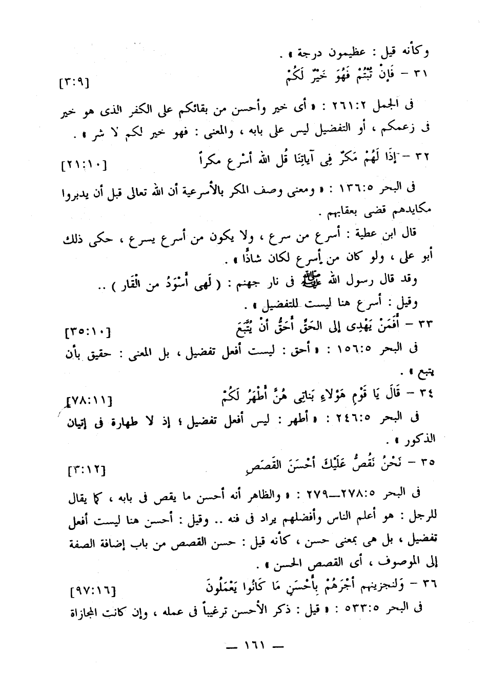 في الجمل 261:2: «أي خير وأحسن من بقائكم على الكفر الذي هو خير في زعمكم، والتفضيل ليس على ببه، والمعنى: فهو خير لكم لا شر».