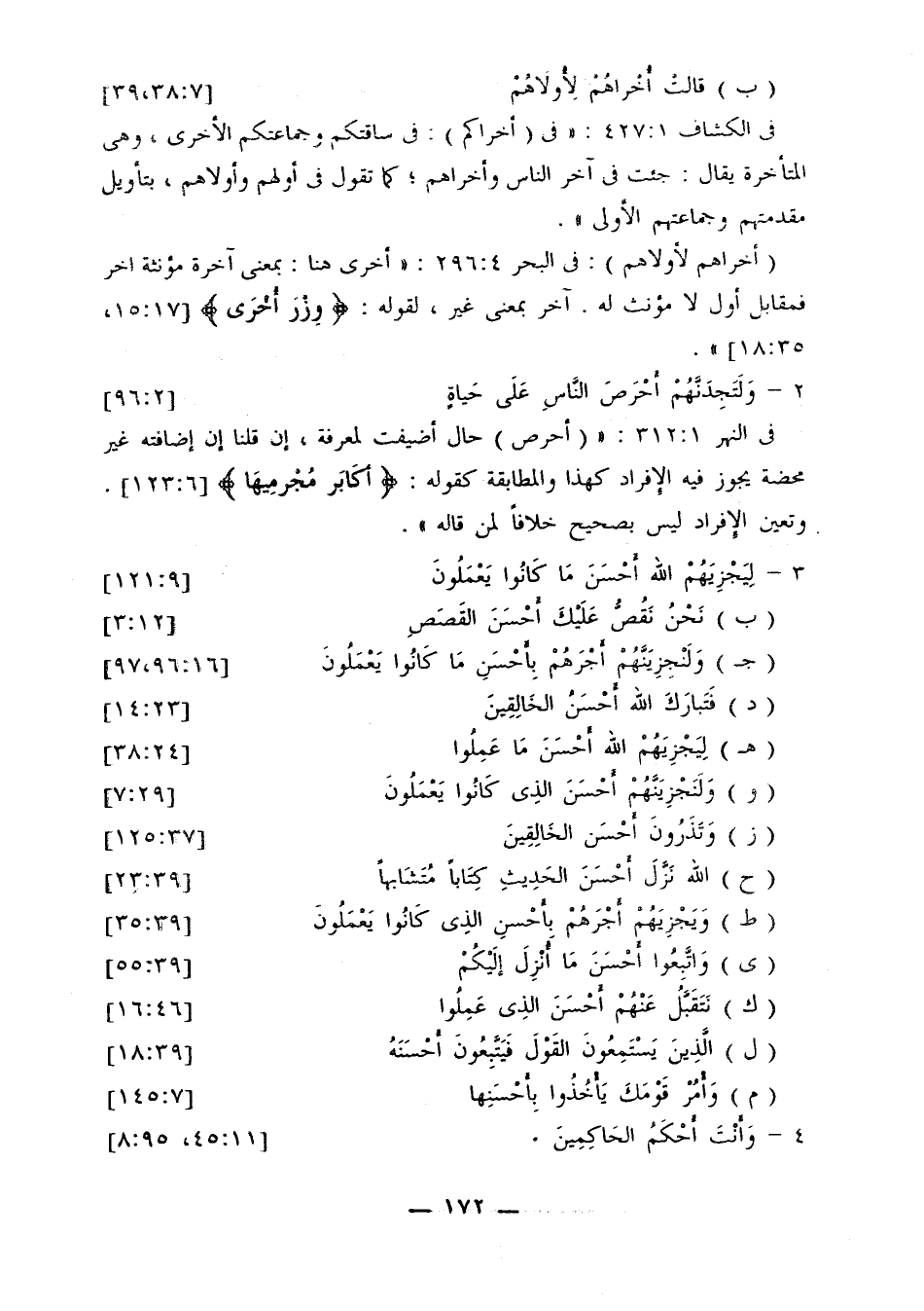 في النهر 312:1: «(أحرص) حال أضيفت لمعرفة، إن قلنا إن إضافته غير محضة يجوز فيه الإفراد كهذا والمطابقة كقوله: {أَكَابِرَ مُجْرِمِيهَا} [123:6]. وتعين الإفراد ليس بصحيح خلافًا لمن قاله».