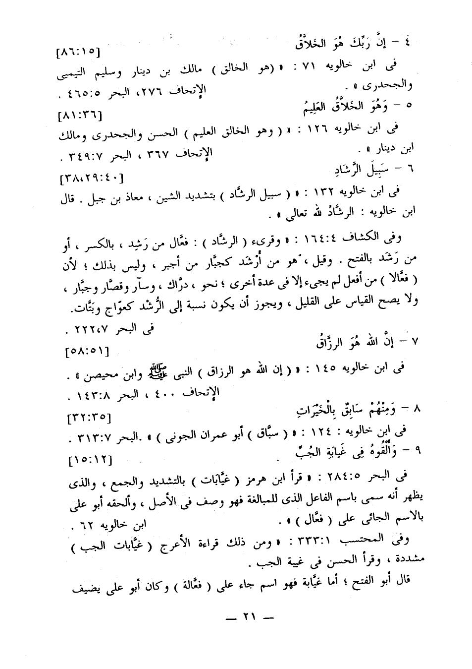 في ابن خالويه 71: «(هو الخالق) مالك بن دينار وسليم التيمي والجحدري». الإتحاف 276، البحر 465:5.