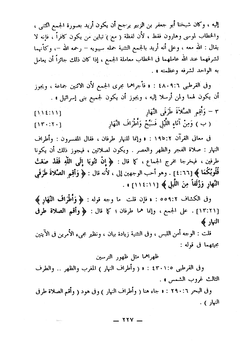 وفي الكشاف 559:2: «فإن قلت ما وجه قوله: {وأطراف النهار} [13:21]. على الجمع، وإنما هما طرفان؛ كما قال: {وَأَقِمِ الصَّلاةَ طَرَفَيِ النَّهَارِ}