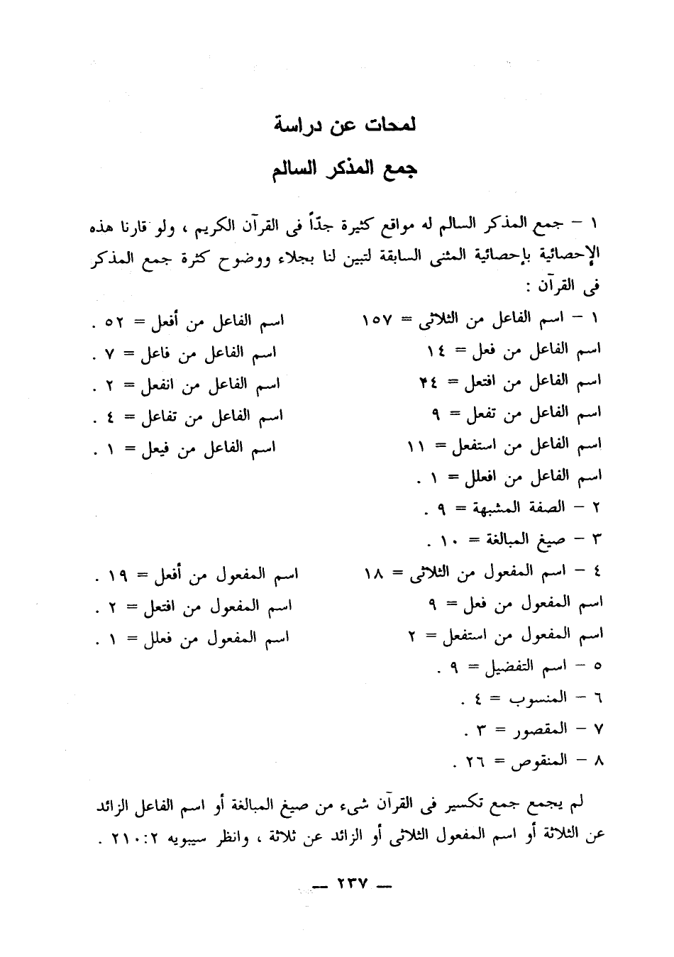 1 - اسم الفاعل من الثلاثي = 157 اسم الفاعل من أفعل = 52.