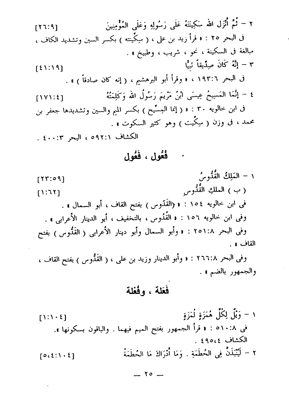 وفي البحر 266:8: «وأبو الدينار وزيد بن علي، (القدوس) بفتح القاف، والجمهور بالضم».