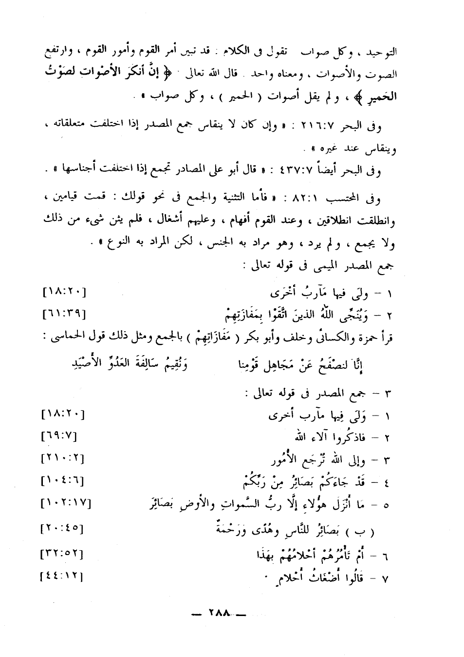 وفي البحر أيضًا 7: 437: «قال أبو علي المصادر تجمع إذا اختلفت أجناسها».