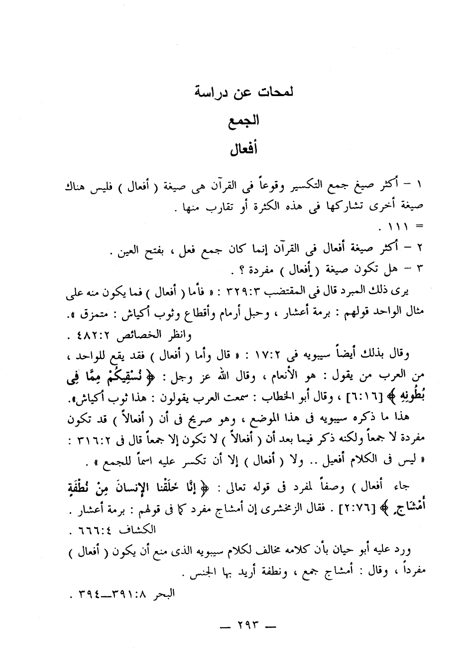 وقال بذلك أيضًا سيبويه في 2: 17: «قال وأما (أفعال) فقد يقع للواحد، من العرب من يقول: هو الأنعام، وقال الله عز وجل: {نسقيكم مما في بطونه} [16: 6]، وقال أبو الخطاب: سمعت العرب يقولون: هذا ثوب أكياش».