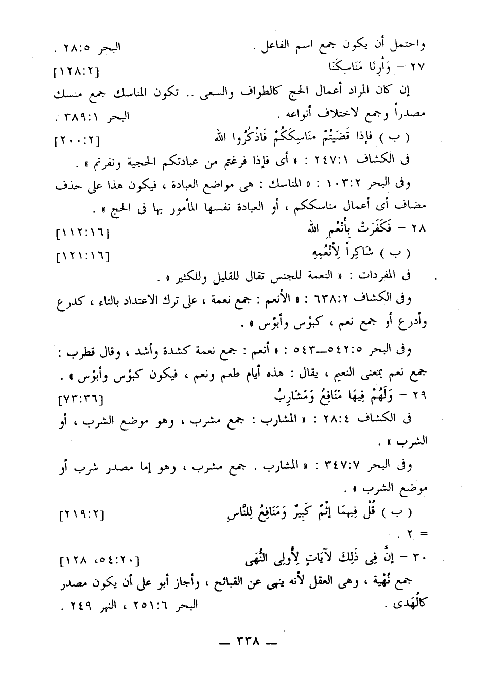 إن كان المراد أعمال الحج كالطواف والسعي ... تكون المناسك جمع منسك مصدرًا وجمع لاختلاف أنواعه. البحر 1: 389.