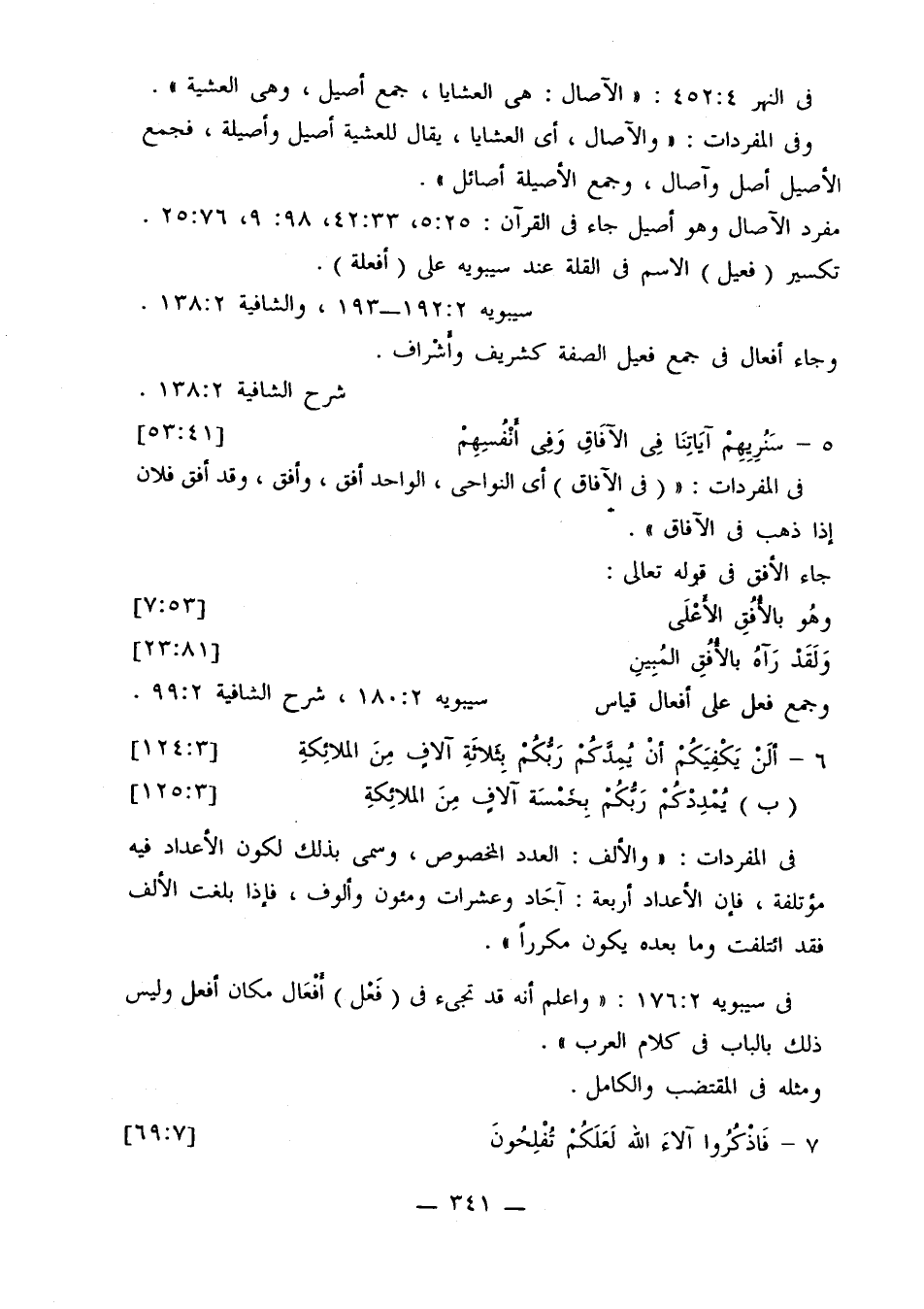 مفرد الآصال وهو أصيل جاء في القرآن: 25: 5، 33: 42، 98: 9، 76: 25.