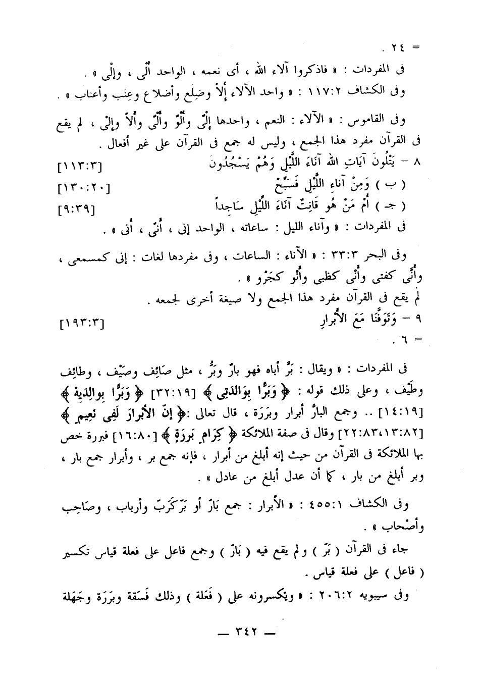 جاء في القرآن (بر) ولم يقع فيه (بار) وجمع فاعل على فعلة قياس تكسير (فاعل) على فعلة قياس.