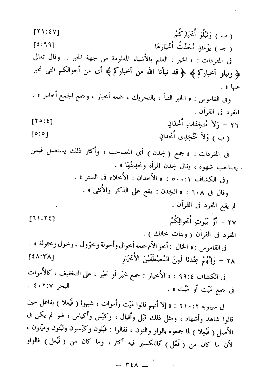 وفي القاموس: «الخبر النبأ، بالتحريك، جمعه أخبار، وجمع الجمع أخابير».