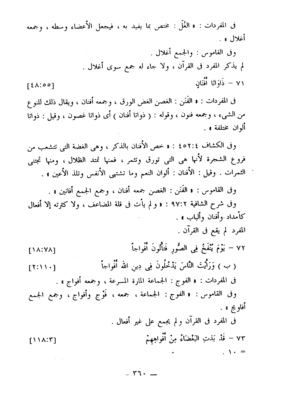 وفي القاموس: «الفنن: الغصن جمعه أفنان، وجمع الجمع أفانين» ..