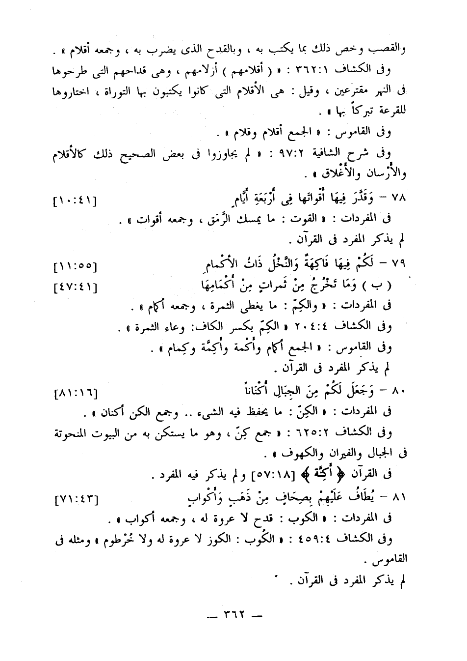 في القرآن {أكنة} [18: 57] ولم يذكر فيه المفرد.