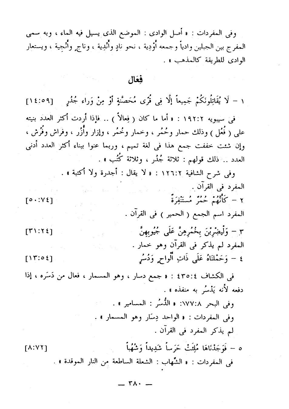 في سيبويه 2: 192: «أما ما كان (فعالا) ... فإذا أردت أكثر العدد بنيته على (فعل) وذلك حمار وحمر، وخمار وخمر، وإزار وأوزر، وفراش وفرش، وإن شئت خففت جمع هذا في لغة تميم، وربما عنوا ببناء أكثر العدد أدنى العدد ... ذلك قولهم: ثلاثة جدر، وثلاثة كتب».