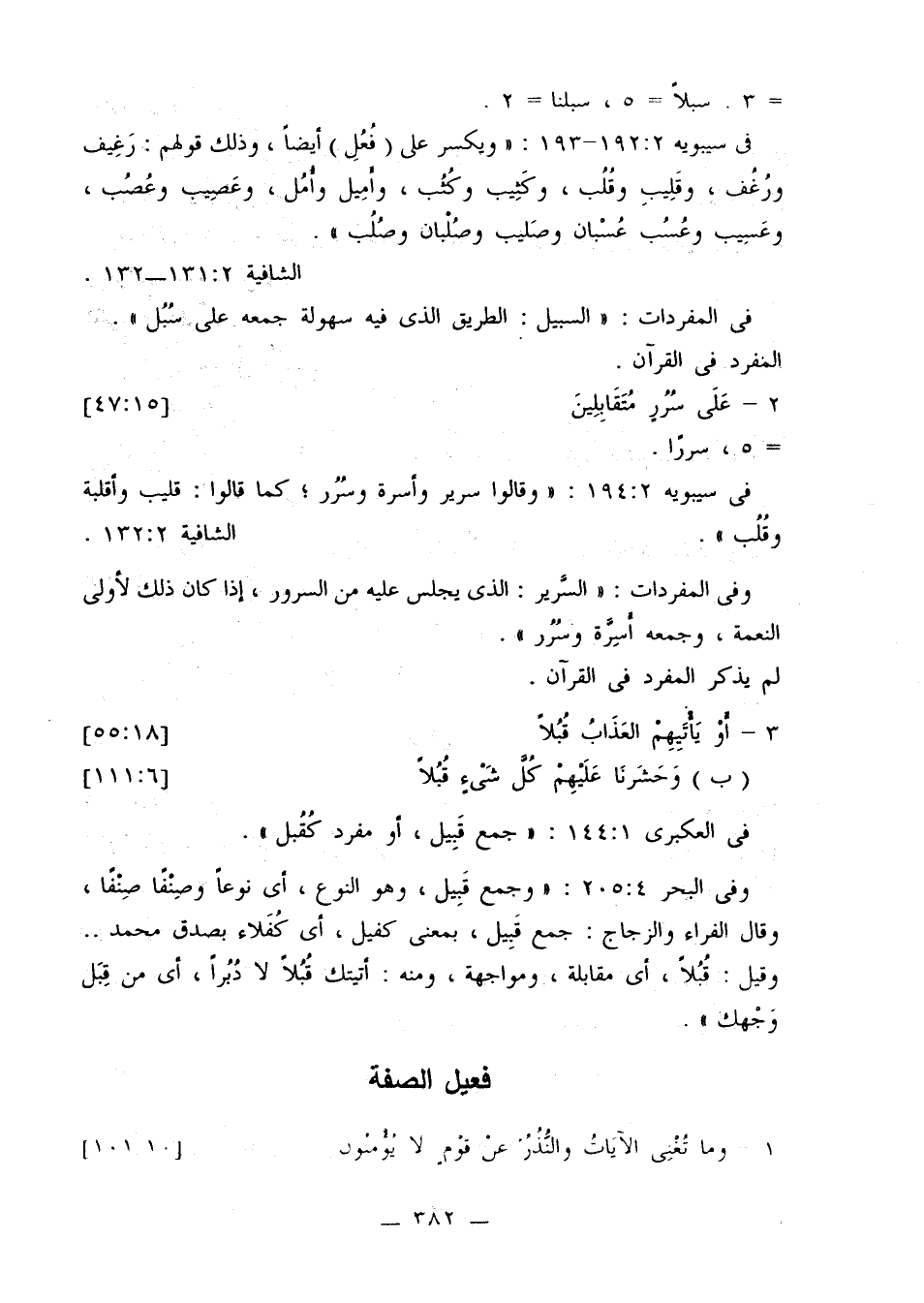 في سيبويه 2: 192 - 193: «ويكسر على (فعل) أيضًا، وذلك قولهم: رغيف ورغف، وقليب وقلب، وكثيب وكثب، وأميل وأمل، وعصيب وعصب، وعسيب وعسب عسبان وصليب وصلبان وصلب».