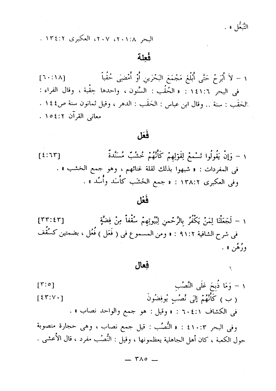 في الكشاف 1: 604: «النصب: قيل جمع نصاب، وهي حجارة منصوبة حول الكعبة، كان أهل الجاهلية يعظمونها، وقيل: النصب مفرد، قال الأعشى.