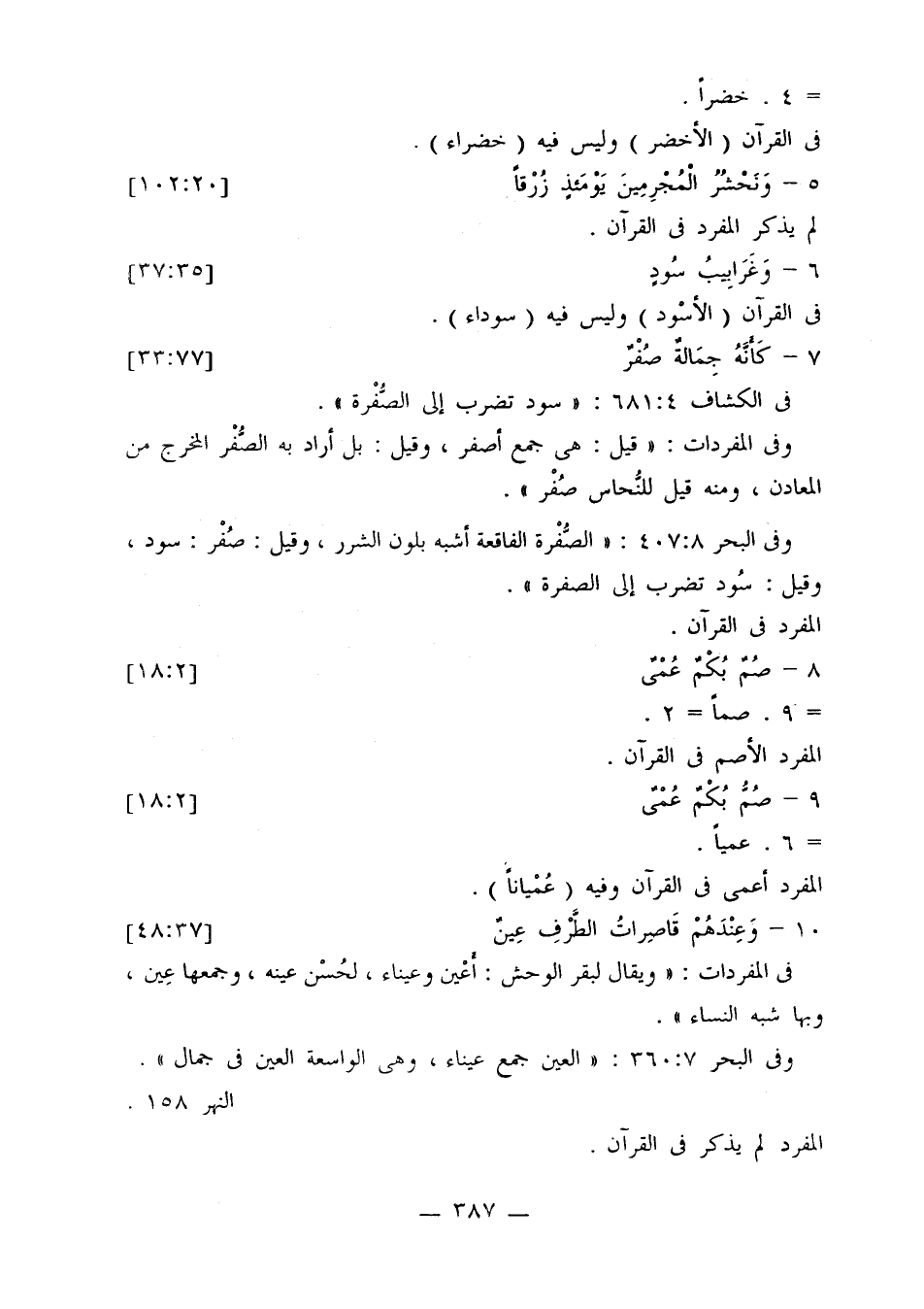 في الكشاف 4: 681: «سود تضرب إلى الصفرة».