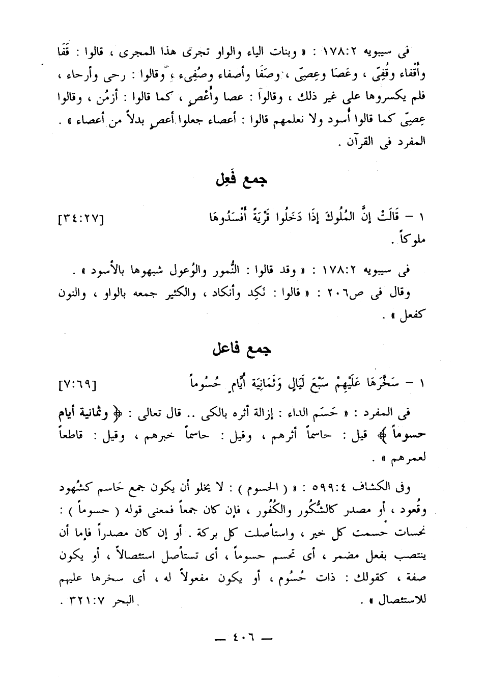 وقال في ص 206: «قالوا: نكد وأنكاد، والكثير جمعه بالواو، والنون كفعل».
