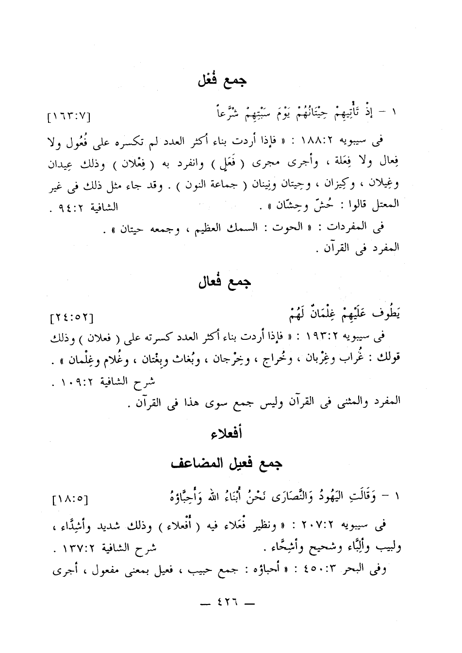 في سيبويه 2: 193: «فإذا أردت بناء أكثر العدد كسرته على (فعلان) وذلك قولك: غراب وغربان، وخراج، وخرجان، وبغاث وبغتان، وغلام وغلمان».
