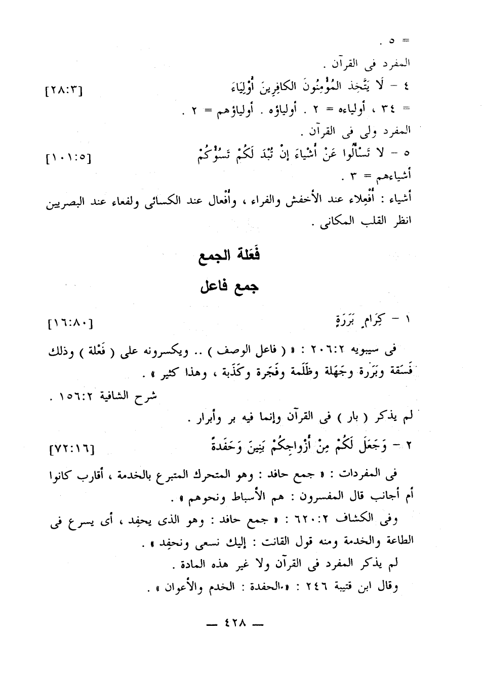 في سيبويه 2: 206: «(فاعل الوصف) ... ويكسرونه على (فعلة) وذلك فسقة وبررة وجهلة وظلمة وفجرة وكذبة، وهذا كثير».