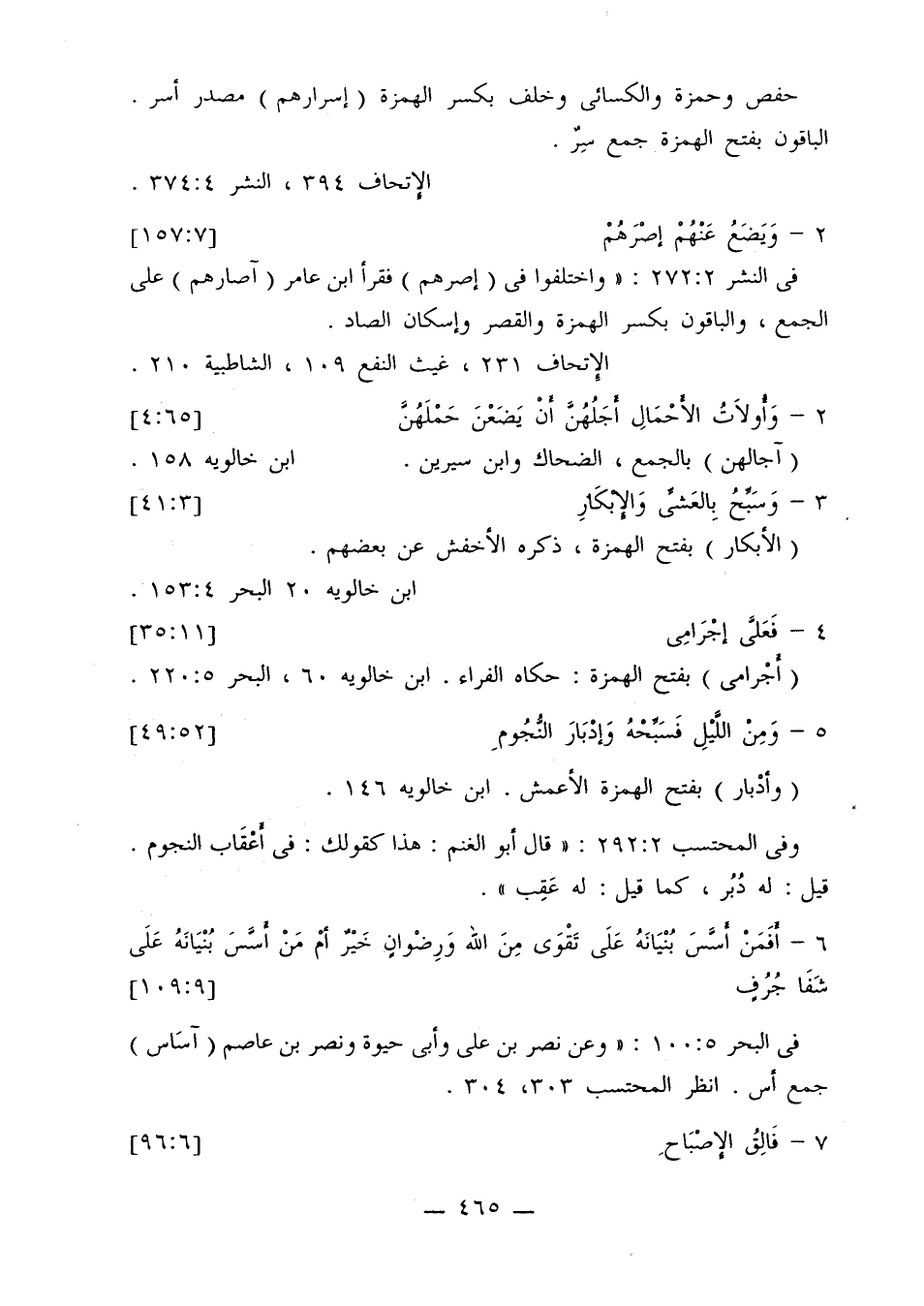 الإتحاف 231، غيث النفع 109، الشاطبية 210.