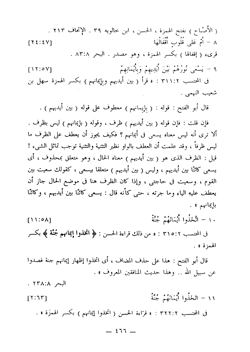 في المحتسب 2: 315: «من ذلك قراءة الحسن: {اتخذوا إيمانهم جنة} بكسر الهمزة».