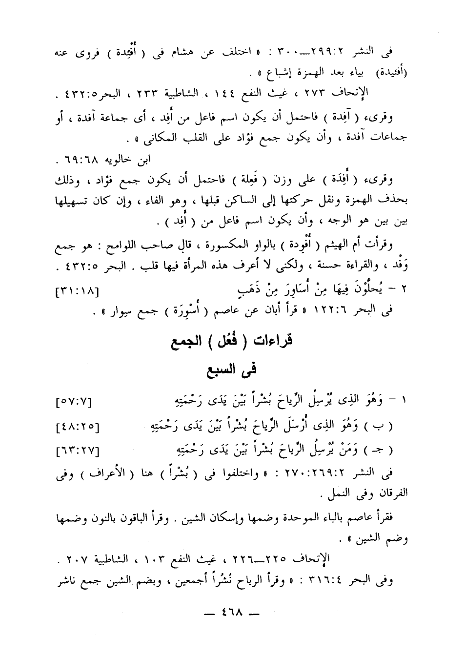 في النشر 2: 269: 270: «واختلفوا في (بشرًا) هنا (الأعراف) وفي الفرقان وفي النمل.