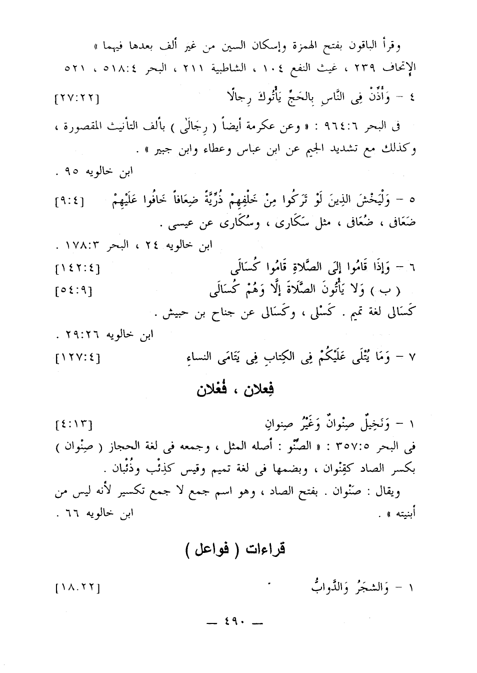 في البحر 6: 964: «وعن عكرمة أيضًا (رجالى) بألف التأنيث المقصورة، وكذلك مع تشديد الجيم عن ابن عباس وعطاء وابن جبير».