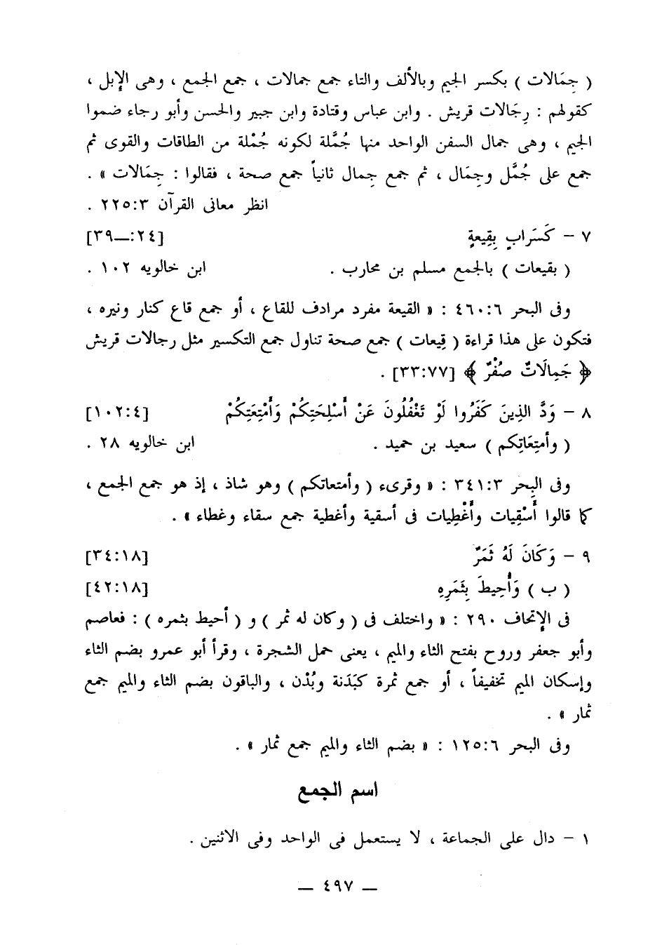 (وأمتعاتكم) سعيد بن حميد. ابن خالويه 28.
