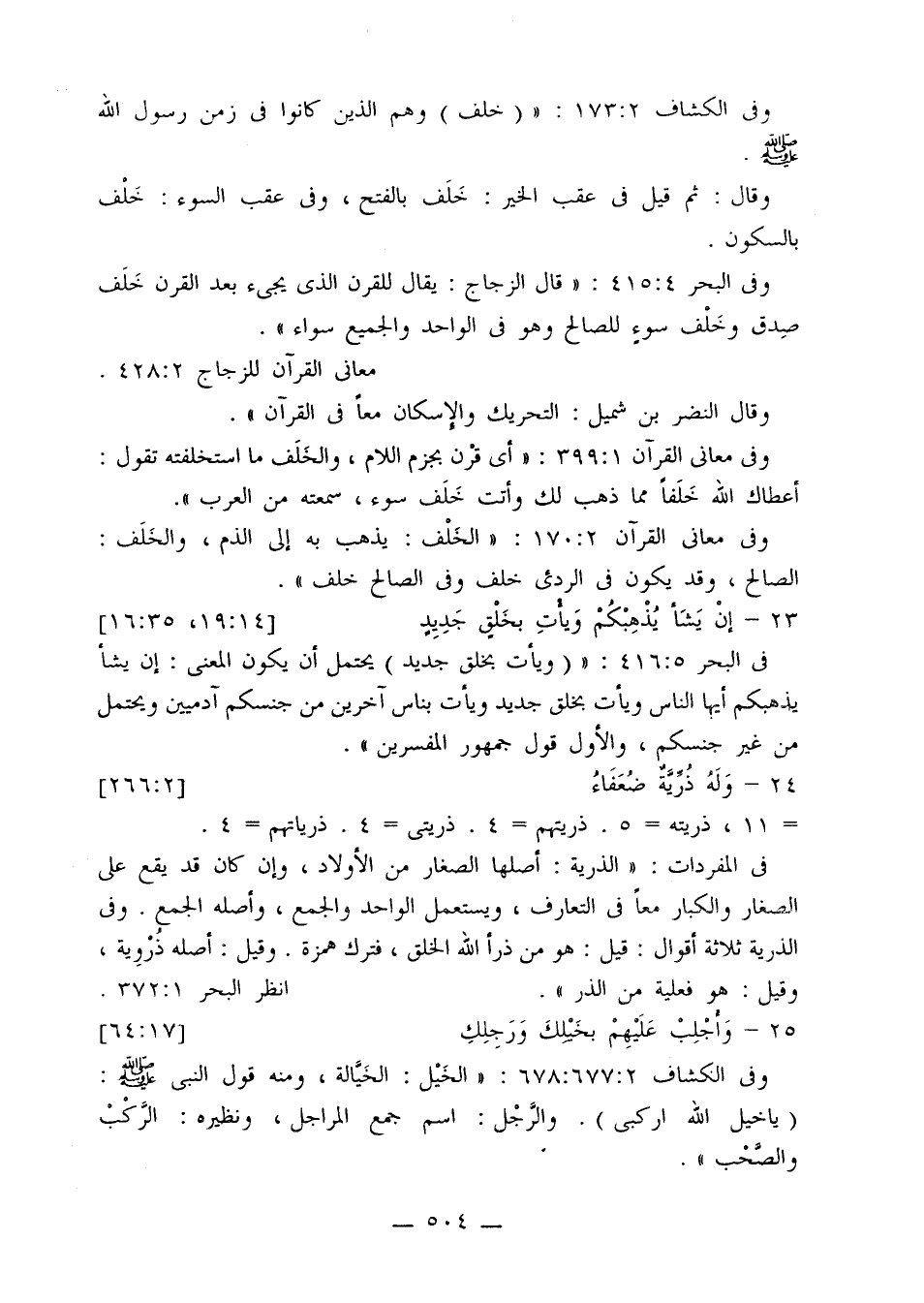 وفي الكشاف 2: 173: «(خلف) وهم الذين كانوا في زمن رسول الله صلى الله عليه وسلم.