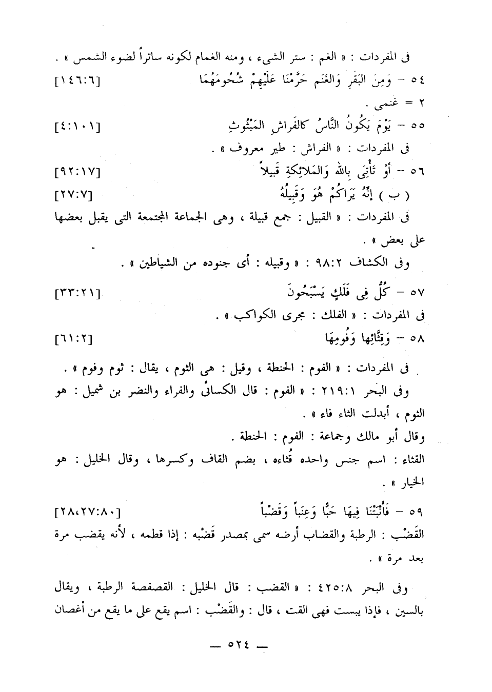 وفي البحر 8: 425: «القضب: قال الخليل: القصفصة الرطبة، ويقال بالسين، فإذا يبست فهي القت، قال: والقضب: اسم يقع على ما يقع من أغصان